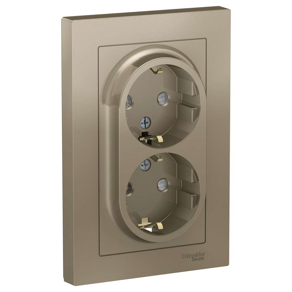 Розетка двойная Systeme Electric (ранее Schneider Electric) серии Glossa (в сборе, цвет бежевый) с заземлением и шторками подходит для сетей 250 В, на ток 16 А. - Заземляющий контакт обеспечивает дополнительную защиту от удара электрическим током. При наличии заземления электрический потенциал уходит в землю, защищая человека. - Выполнен из материала PС+ASA, стойкого к УФ-излучению и появлению царапин. - Двойная розетка позволяет подключить два устройства в одном месте.
