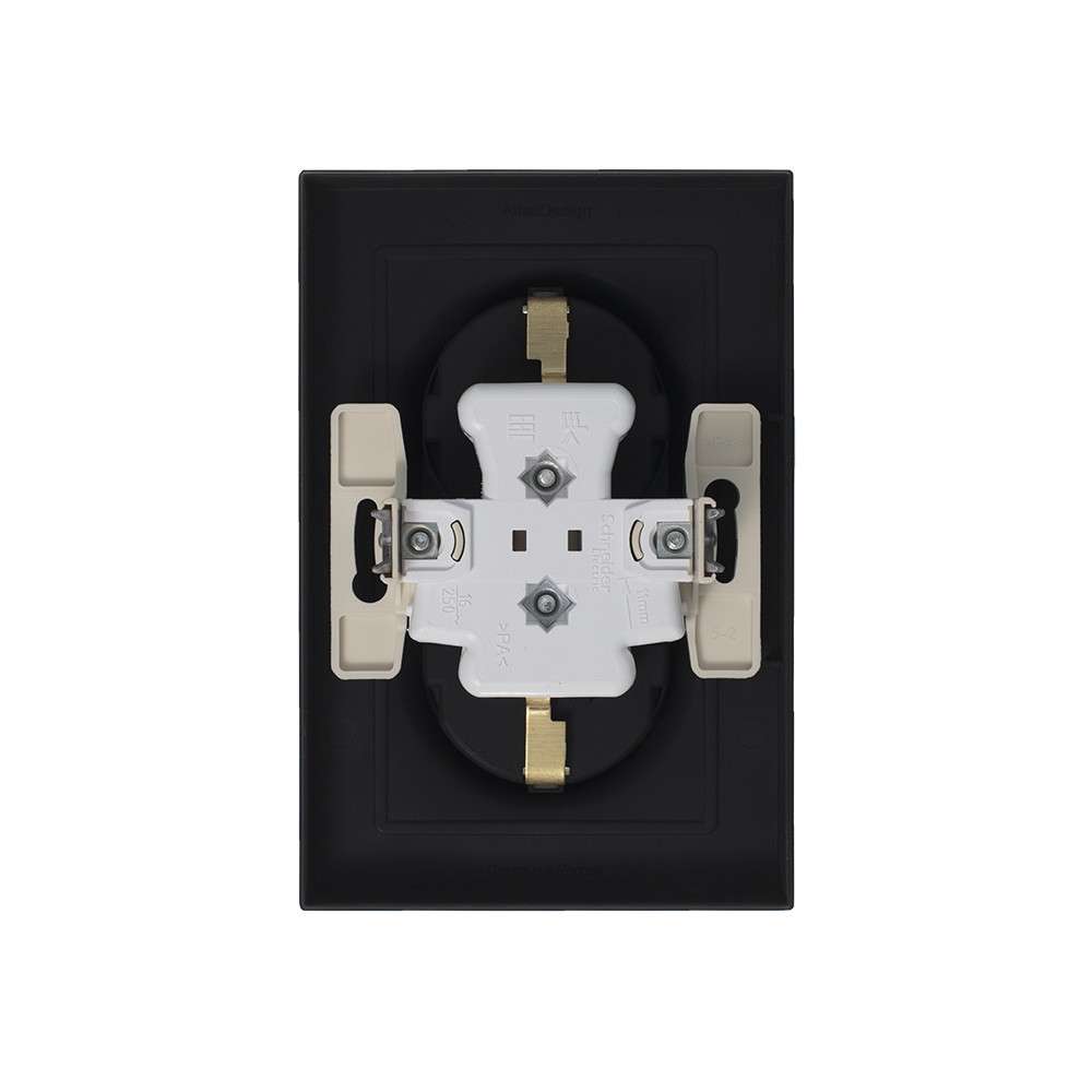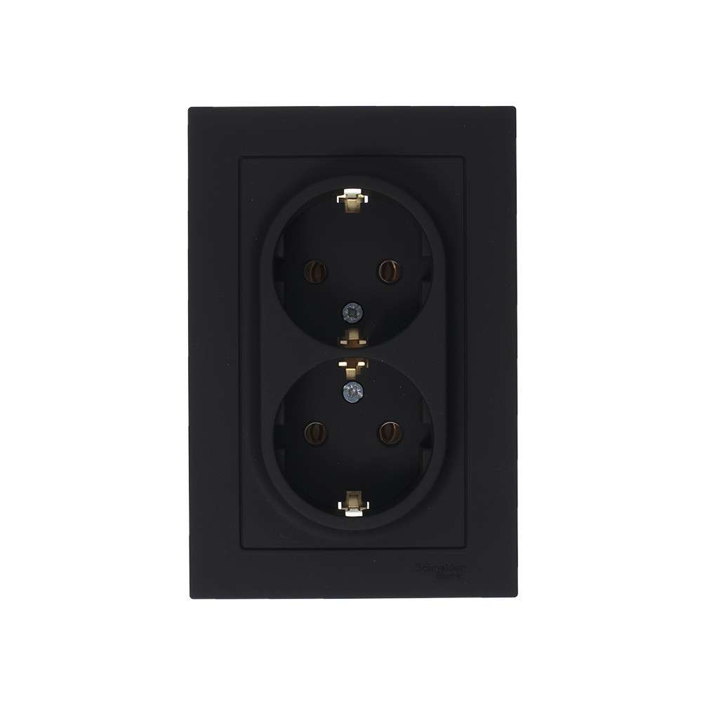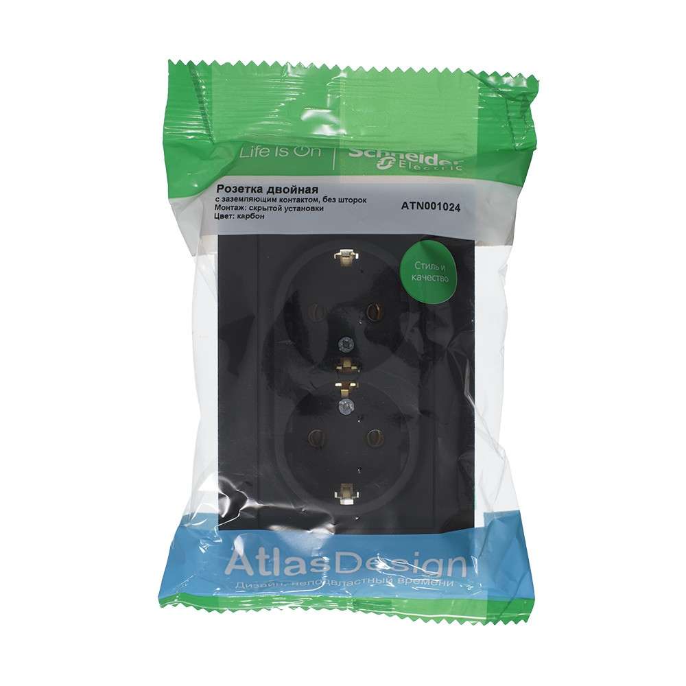 Розетка двойная Systeme Electric (ранее Schneider Electric) серии AtlasDesign (в сборе, цвет карбон) с заземлением, без шторок подходит для сетей 250 В, на ток 16 А. - Заземляющий контакт обеспечивает дополнительную защиту от удара электрическим током. - Двойная розетка позволяет подключить два устройства в одном месте. - Изделие поставляется в комплекте с рамкой того же цвета. - Благодаря покрытию «soft touch» к изделию приятно прикасаться.