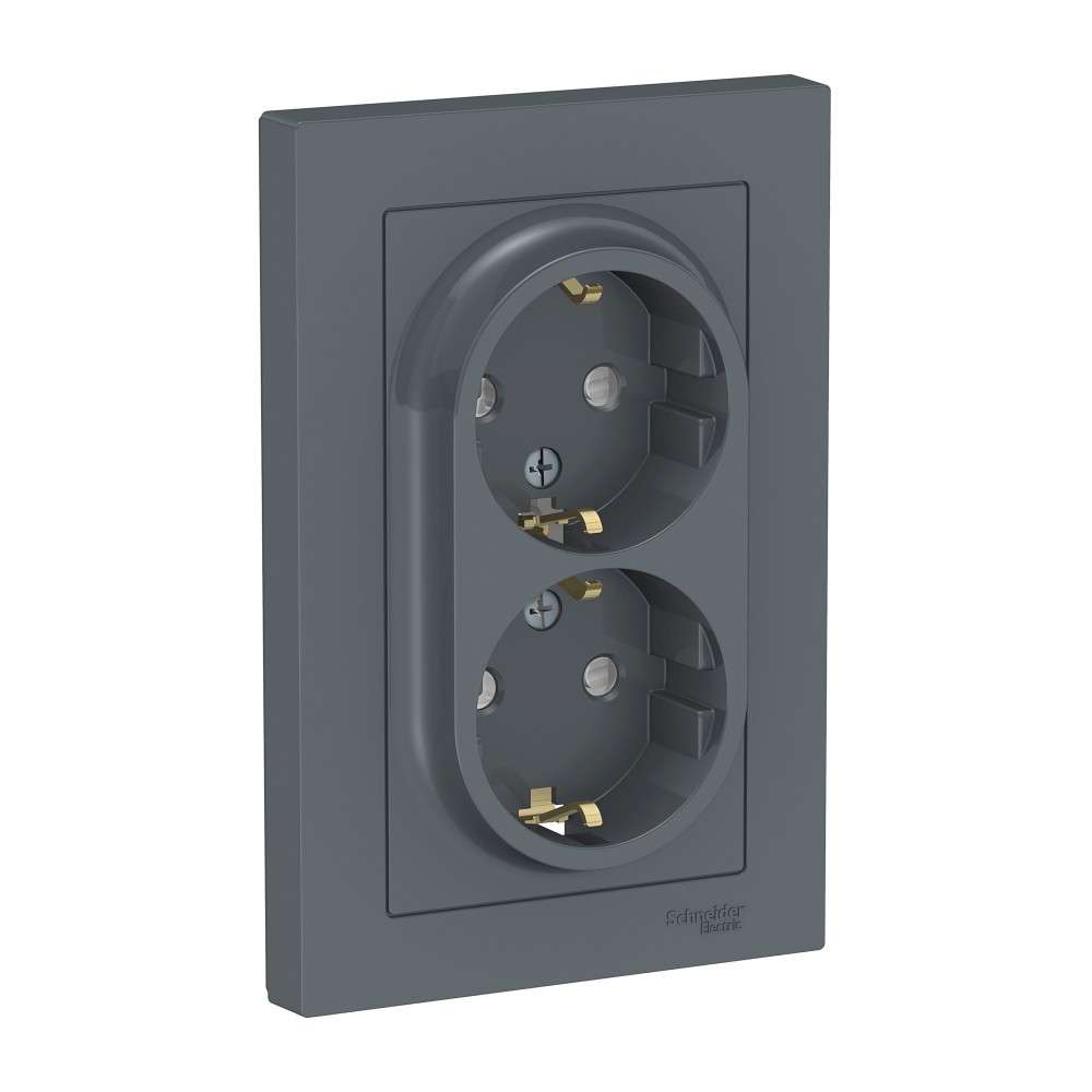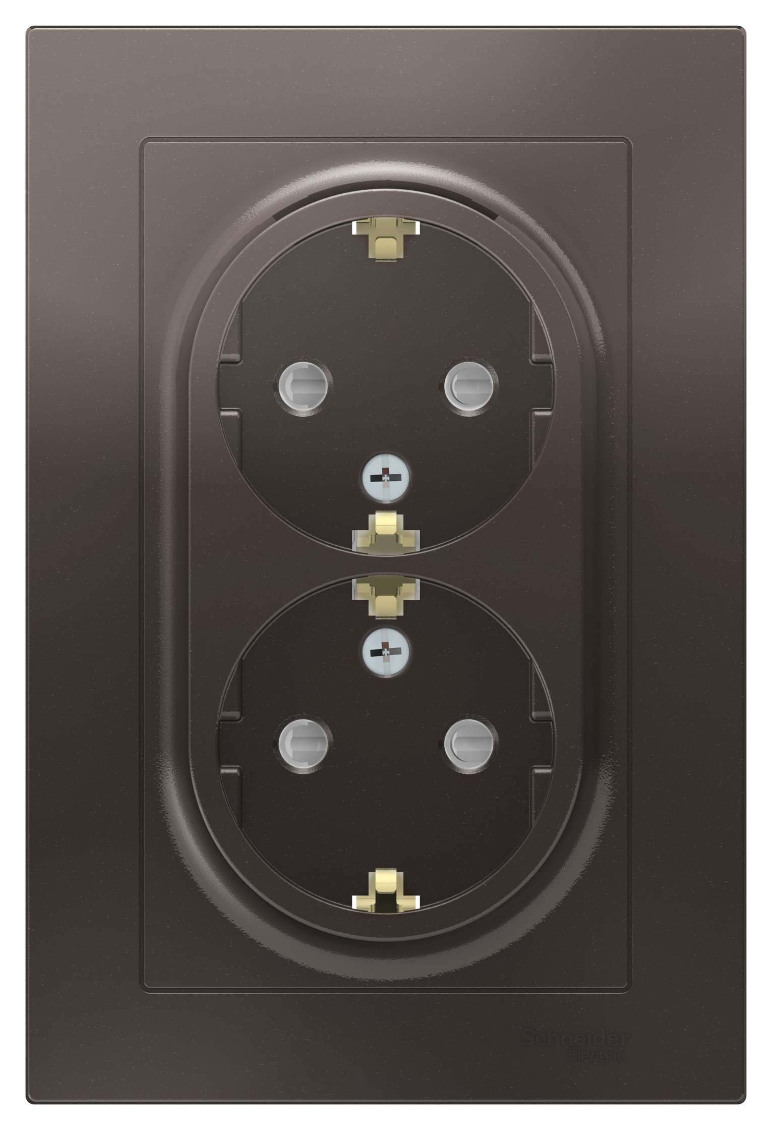 Розетка двойная Systeme Electric (ранее Schneider Electric) серии AtlasDesign (в сборе, цвет мокко) с заземлением и шторками подходит для сетей 250 В, на ток 16 А. - Заземляющий контакт обеспечивает дополнительную защиту от удара электрическим током. - Лицевые детали из качественного ABS-пластика, устойчивого к царапинам и УФ-излучению. - Двойная розетка позволяет подключить два устройства в одном месте. - Изделие поставляется в комплекте с рамкой того же цвета.