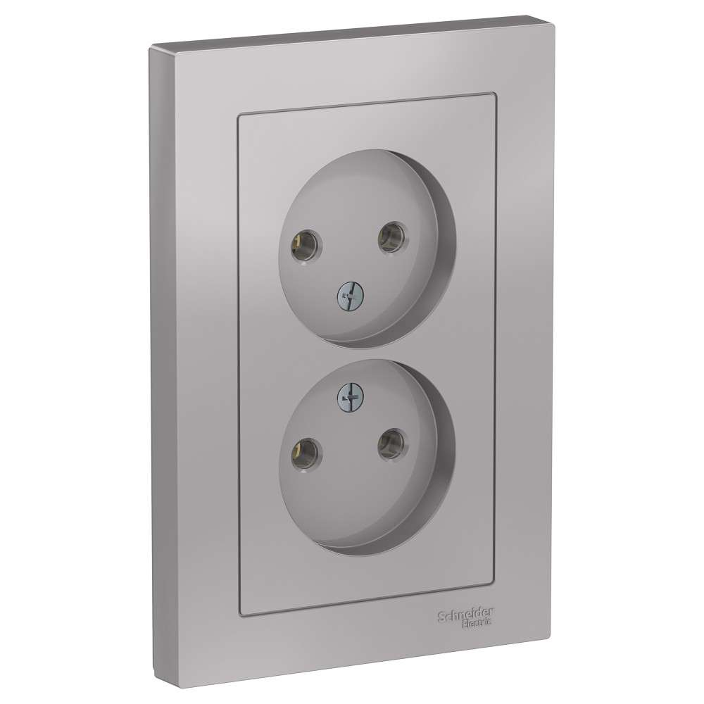 РОЗЕТКА дв.без з/к,16А, в сб, АЛЮМИНИЙ