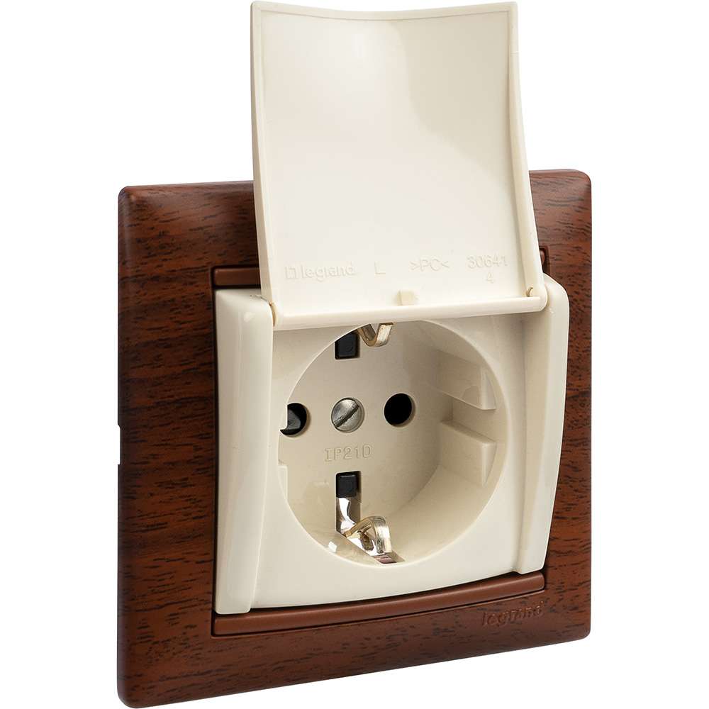 Силовая розетка - Valena - 2К+3 - с откидной крышкой - на винтах - 10/16 А - 230/250 В~ - слоновая кость
