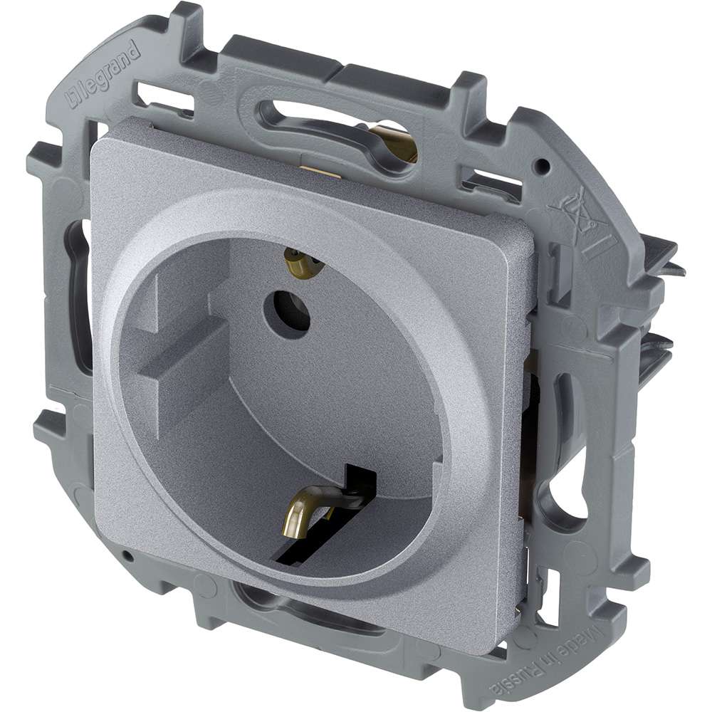 Розетка с заземлением и интегрированными защитными шторками Legrand Inspiria для скрытого монтажа , цвет Алюминий. Максимальный ток 16 А, напряжение 250В, максимальная мощность 3680 Вт. Применяется для электропитания в зданиях с проводкой с заземлением (с защитным проводником). Защищает детей и других пользователей от удара электрическим током. Шторки осуществляют защитную функцию путём ограничения доступа к токоведущим контактам. Доступ открывается только при подключении вилки. Особенности изделия: - Контактная группа изготовлена из высококачественной латуни CuZn37, имеет высокую степень упругости и сохраняет плотный контакт с вилкой, при длительной эксплуатации. - Зажимы для присоединения проводников винтовые П-образной формы для исключения бокового выдавливания провода. - В зажимах установлены качественные винты с никель-цинковым напылением для надежного резьбового соединения даже при чрезмерных моментах затяжки. - Защитный контакт с широким основанием и специальным профилем для упгугости при подключении/отключении и плотного контакта с вилкой. - Лицевая панель крепится на защелках. Изготовлена из прочного глянцевого поликарбоната, стойкого к механическим воздействиям, выгоранию и загрязнениям. - Защитные шторки интегрированы в механизм, обеспечивают высокий уровень электробезопасности и не затрудняют подключение и извлечение вилки.