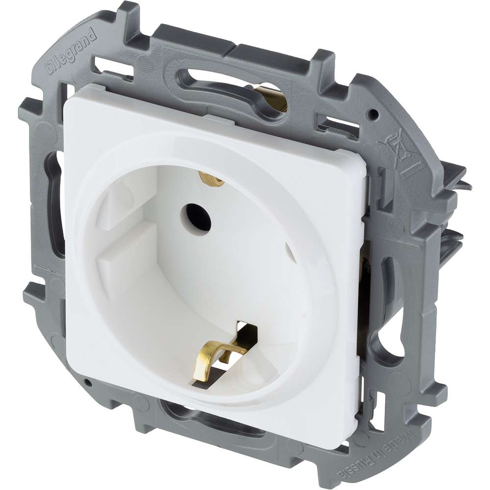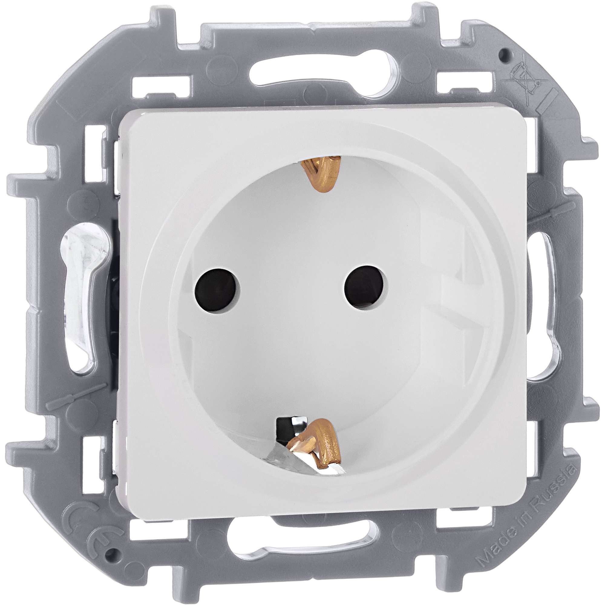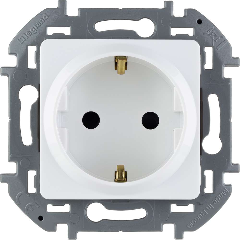Розетка с заземлением и интегрированными защитными шторками Legrand Inspiria для скрытого монтажа , цвет Белый. Максимальный ток 16 А, напряжение 250В, максимальная мощность 3680 Вт. Применяется для электропитания в зданиях с проводкой с заземлением (с защитным проводником). Защищает детей и других пользователей от удара электрическим током. Шторки осуществляют защитную функцию путём ограничения доступа к токоведущим контактам. Доступ открывается только при подключении вилки. Особенности изделия: - Контактная группа изготовлена из высококачественной латуни CuZn37, имеет высокую степень упругости и сохраняет плотный контакт с вилкой, при длительной эксплуатации. - Зажимы для присоединения проводников винтовые П-образной формы для исключения бокового выдавливания провода. - В зажимах установлены качественные винты с никель-цинковым напылением для надежного резьбового соединения даже при чрезмерных моментах затяжки. - Защитный контакт с широким основанием и специальным профилем для упгугости при подключении/отключении и плотного контакта с вилкой. - Лицевая панель крепится на защелках. Изготовлена из прочного глянцевого поликарбоната, стойкого к механическим воздействиям, выгоранию и загрязнениям. - Защитные шторки интегрированы в механизм, обеспечивают высокий уровень электробезопасности и не затрудняют подключение и извлечение вилки.