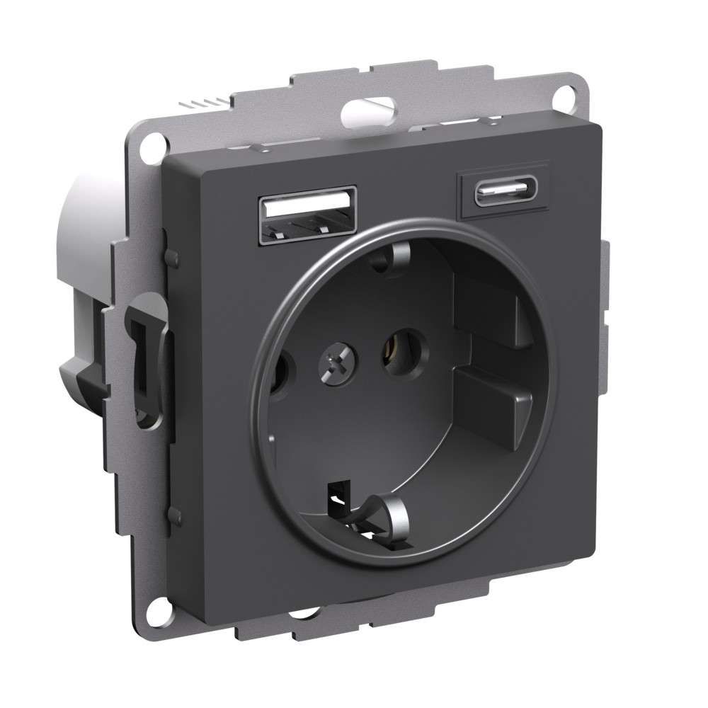 Розетка Systeme Electric (ранее Schneider Electric) серии Glossa (в сборе, цвет титан) одинарная без заземления и без шторок подходит для сетей 250 В, на ток 16 А. - Выполнен из материала PС+ASA, стойкого к УФ-излучению и появлению царапин. - Эргономичные клеммы розеток расположены в один ряд.