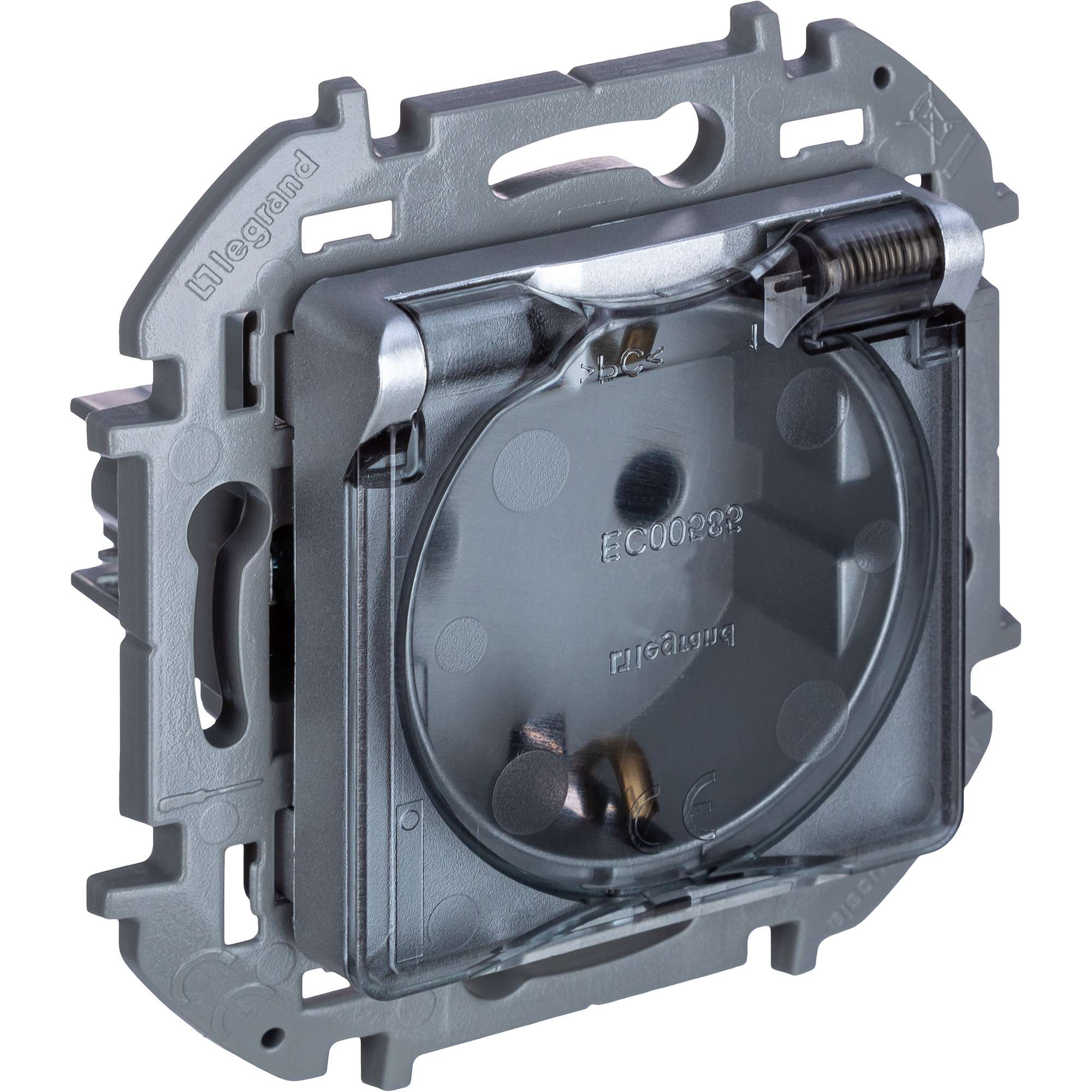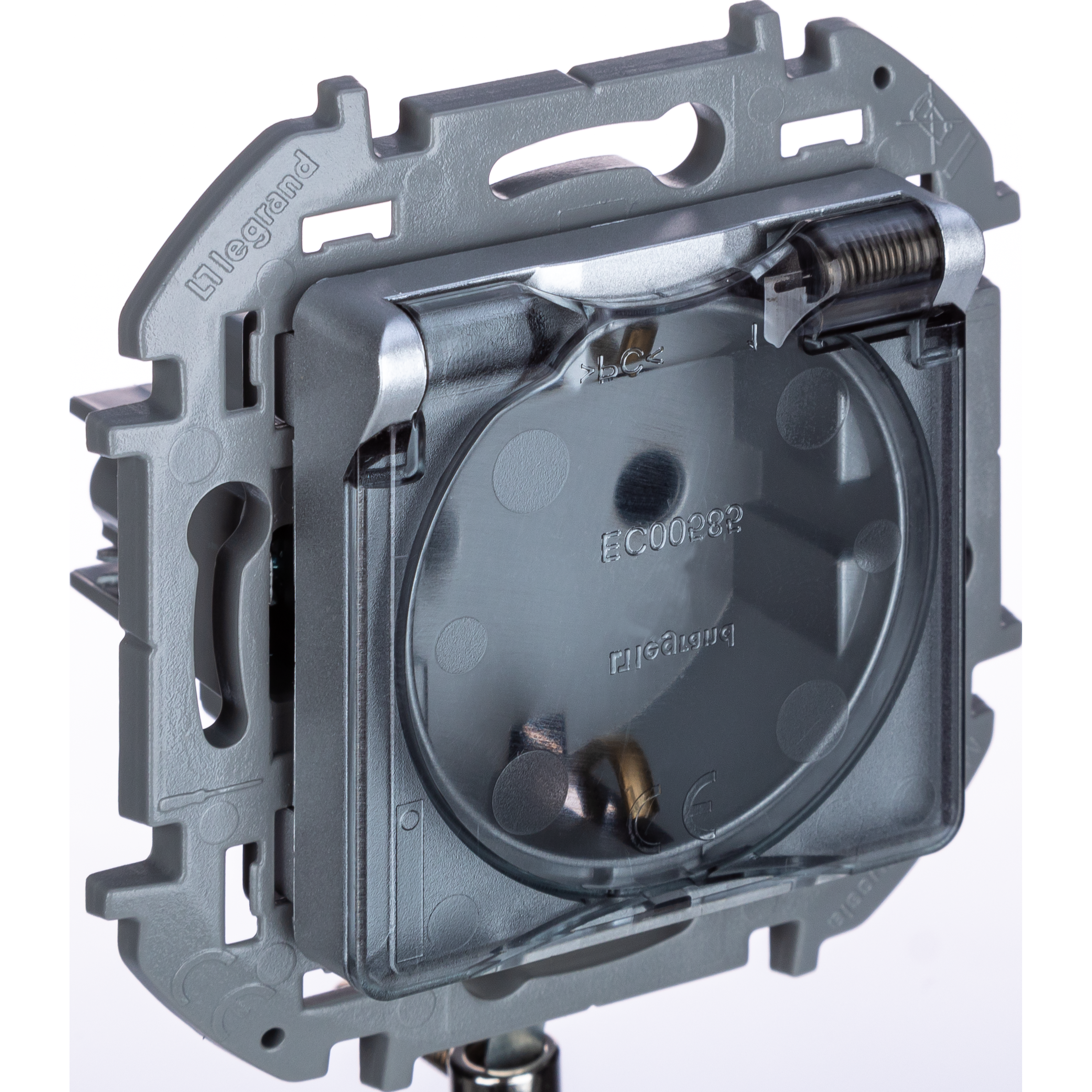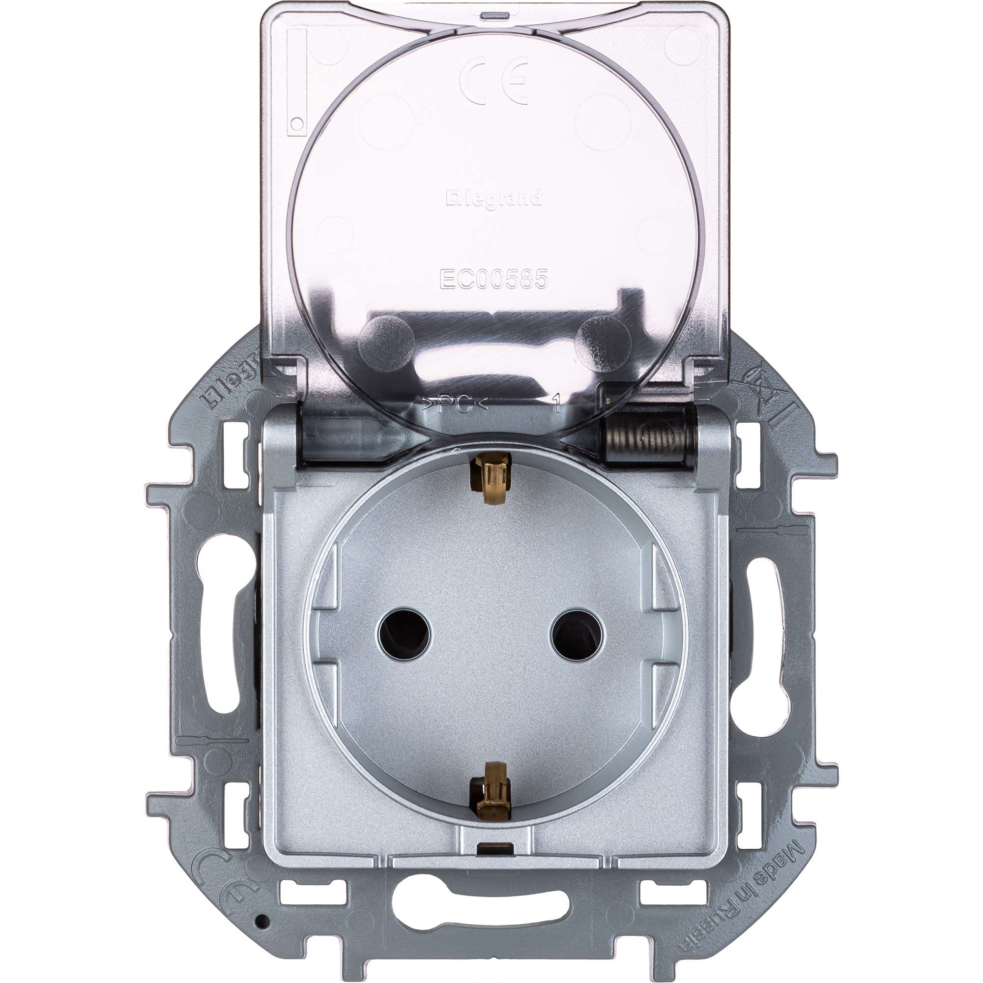 Розетка с заземлением, защитной крышкой и интегрированными защитными шторками Legrand Inspiria для скрытого монтажа , степень пылевлагозащиты IP44, цвет Алюминий. Максимальный ток 16 А, напряжение 250В, максимальная мощность 3680 Вт. Применяется для электропитания в зданиях с проводкой с заземлением (с защитным проводником). Предназначена для установки в местах с повышенной влажностью. Оснащена интегрированными шторками, которые защищают детей и других пользователей от удара электрическим током. Особенности изделия: - Контактная группа изготовлена из высококачественной латуни CuZn37, имеет высокую степень упругости и сохраняет плотный контакт с вилкой, при длительной эксплуатации. - Зажимы для присоединения проводников винтовые П-образной формы для исключения бокового выдавливания провода. - В зажимах установлены качественные винты с никель-цинковым напылением для надежного резьбового соединения даже при чрезмерных моментах затяжки. - Защитный контакт с широким основанием и специальным профилем для упгугости при подключении/отключении и плотного контакта с вилкой. - Лицевая панель крепится на защелках. Изготовлена из прочного глянцевого поликарбоната, стойкого к механическим воздействиям, выгоранию и загрязнениям. - Защитные шторки интегрированы в механизм, обеспечивают высокий уровень электробезопасности и не затрудняют подключение и извлечение вилки. - Благодаря наличию защитной крышки и мембраны обладает степенью пыле-влагозащиты IP44 и подходит для размещения в местах с повышенной влажностью.