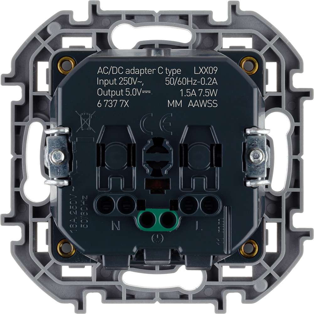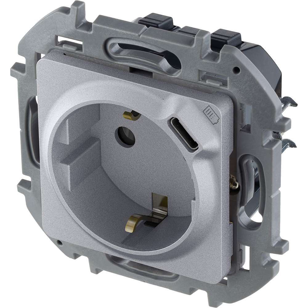Комбинированная розетка 2К+З с зарядным устройством USB тип С Legrand Inspiria для скрытого монтажа, цвет Алюминий. Максимальный ток розетки 16АХ, напряжение розетки 250В, напряжение зарядного устройства =5В, максимальный зарядный ток 1500 мА. Применяется для одновременного электропитания бытовых потребителей и зарядки мобильного устройства. Оснащена интегрированными шторками, которые защищают детей и других пользователей от удара электрическим током. Особенности изделия: - Устройство размещается в 1 установочное место и подходит для многопостового монтажа без ограничений. - Возможно одновременное подключение двух устройств для элекропитания и зарядки. - Стандартный ток розетки 16 АХ позволяет осуществлять электропитание любых бытовых электроприборов без ограничений. - Защитные шторки интегрированы в механизм, обеспечивают высокий уровень электробезопасности и не затрудняют подключение и извлечение вилки. - Зарядный модуль интегрирован в схемотехнику, не требуя дополнительных подключений и соединений при установке. - Современный реверсивный разьем USB тип С очень удобен в использовании и актуален для будущих гаджетов. - Зарядный модуль оснащен встроенной защитой от перегрузки, что повышает безопасность его использования в быту. - Стандартное подключение к электросети двумя проводами (фаза и нейтраль) позволяет легко заменить стандартную электрическую розетку.