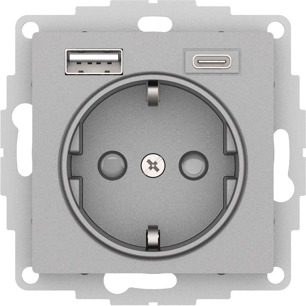 Механизм Systeme Electric (ранее Schneider Electric) серии AtlasDesign в цвете алюминий розетки одинарной с заземлением и без шторок подходит для сетей 250 В, на ток 16 А. - Заземляющий контакт обеспечивает дополнительную защиту от удара электрическим током. При наличии заземления электрический потенциал уходит в землю, защищая человека. - Лицевые детали из качественного ABS-пластика, устойчивого к царапинам и УФ-излучению. - Усиленные прямые монтажные лапки для лучшей фиксации механизма в монтажной коробке.