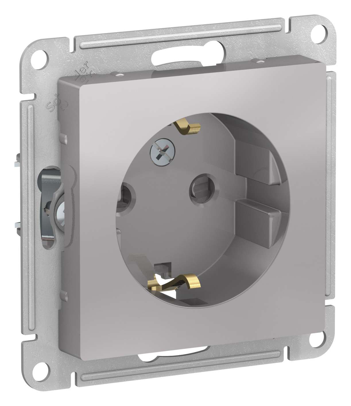 Механизм Systeme Electric (ранее Schneider Electric) серии AtlasDesign в цвете алюминий розетки одинарной с заземлением и шторками подходит для сетей 250 В, на ток 16 А. - Заземляющий контакт обеспечивает дополнительную защиту от удара электрическим током. При наличии заземления электрический потенциал уходит в землю, защищая человека. - Лицевые детали из качественного ABS-пластика, устойчивого к царапинам и УФ-излучению. - Усиленные прямые монтажные лапки для лучшей фиксации механизма в монтажной коробке.