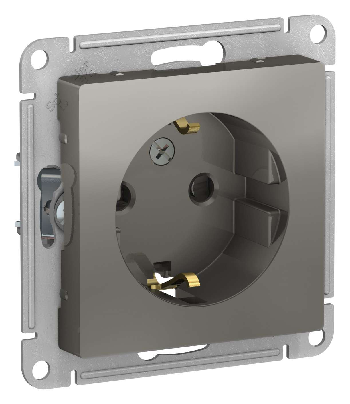 Механизм Systeme Electric (ранее Schneider Electric) серии AtlasDesign в цвете сталь розетки одинарной с заземлением и шторками подходит для сетей 250 В, на ток 16 А. - Заземляющий контакт обеспечивает дополнительную защиту от удара электрическим током. При наличии заземления электрический потенциал уходит в землю, защищая человека. - Лицевые детали из качественного ABS-пластика, устойчивого к царапинам и УФ-излучению. - Усиленные прямые монтажные лапки для лучшей фиксации механизма в монтажной коробке.