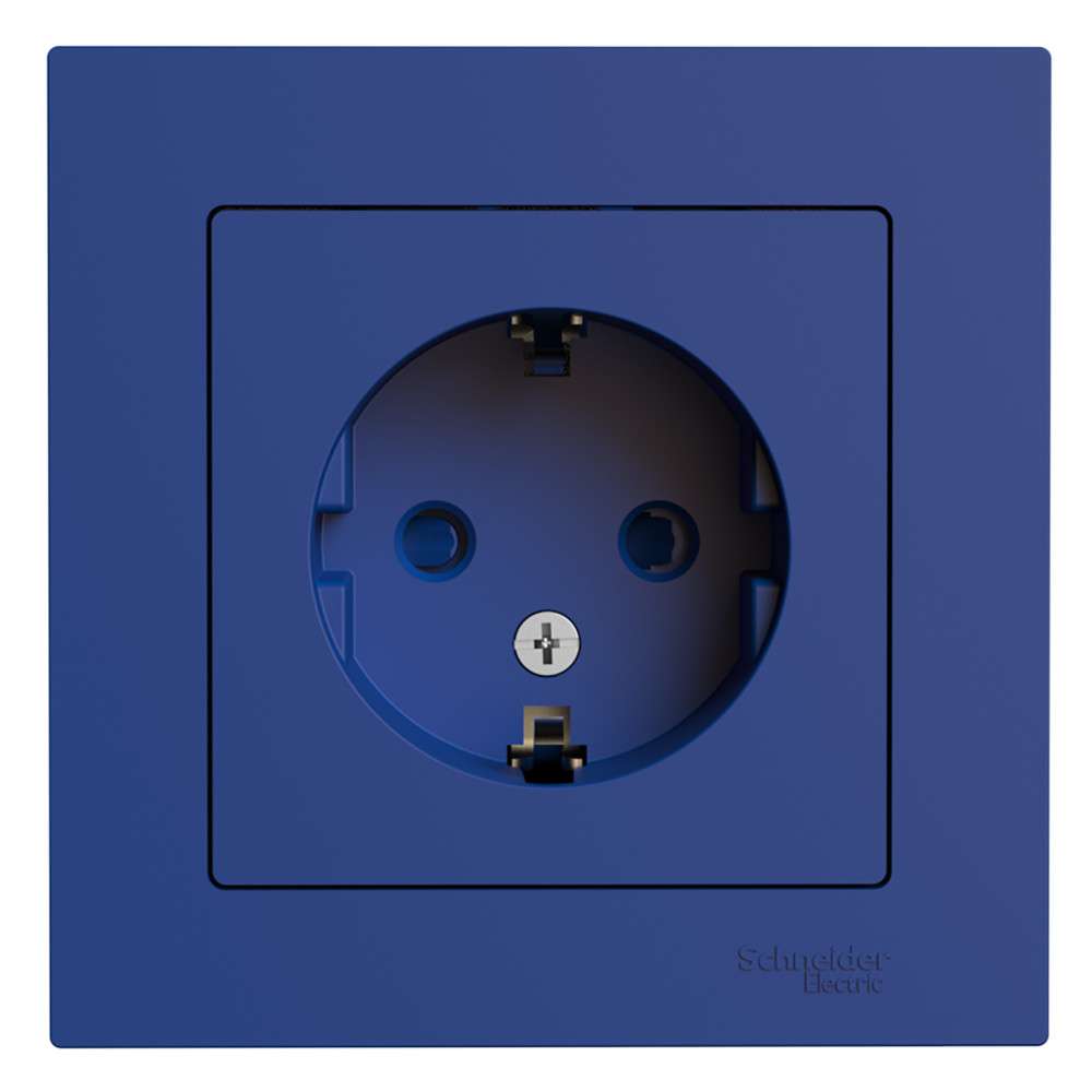 Розетка Systeme Electric (ранее Schneider Electric) серии AtlasDesign (в сборе, цвет аквамарин) одинарная с заземлением и без шторок подходит для сетей 250 В, на ток 16 А. Заземляющий контакт обеспечивает дополнительную защиту от удара электрическим током. Лицевые детали из качественного ABS-пластика, устойчивого к царапинам и УФ-излучению. Изделие поставляется в комплекте с рамкой того же цвета.