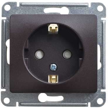 Механизм Systeme Electric (ранее Schneider Electric) серии Glossa (цвет шоколад) розетки одинарной с заземлением и шторками подходит для сетей 250 В, на ток 16 А. - Заземляющий контакт обеспечивает дополнительную защиту от удара электрическим током. При наличии заземления электрический потенциал уходит в землю, защищая человека. - Выполнен из материала PС+ASA, стойкого к УФ-излучению и появлению царапин. - Эргономичные клеммы розеток расположены в один ряд.