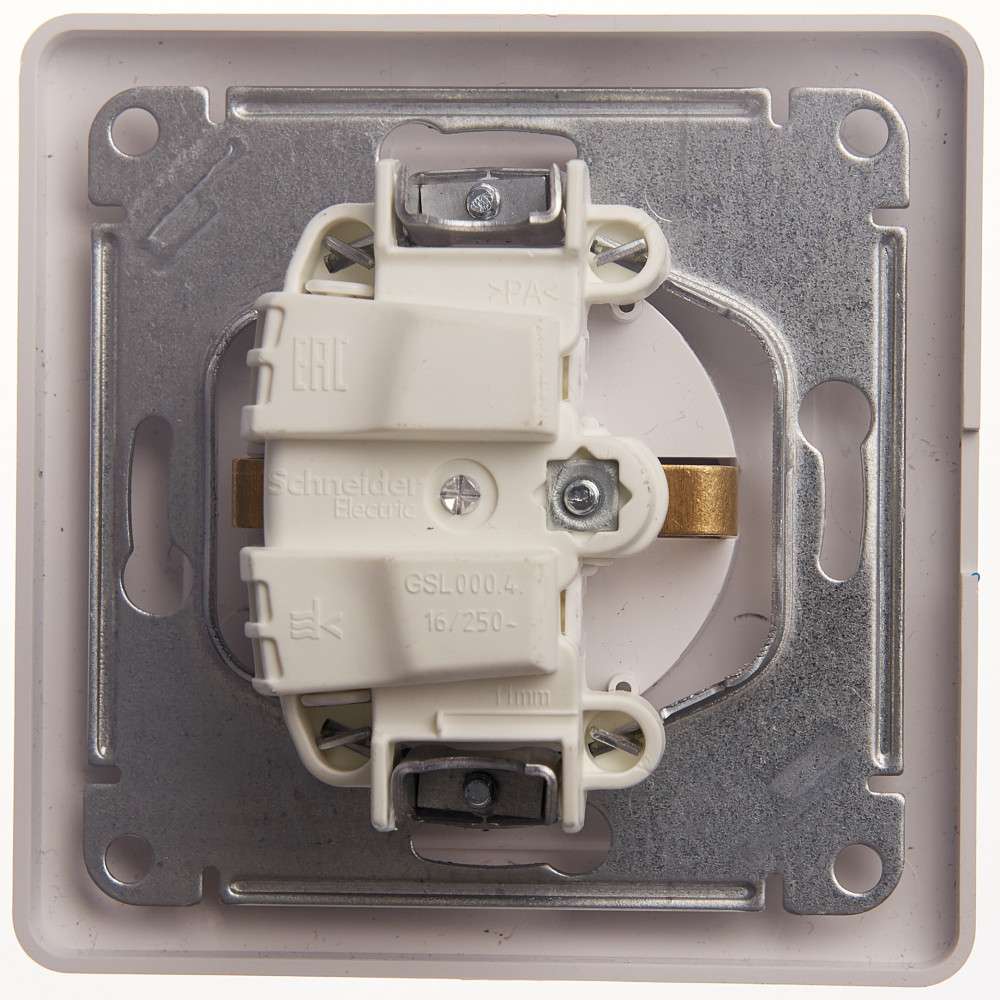 Розетка Systeme Electric (ранее Schneider Electric) серии Glossa (в сборе, цвет белый) одинарная с заземлением, шторками и крышкой подходит для сетей 250 В, на ток 16 А. - Заземляющий контакт обеспечивает дополнительную защиту от удара электрическим током. При наличии заземления электрический потенциал уходит в землю, защищая человека. - Выполнен из материала PС+ASA, стойкого к УФ-излучению и появлению царапин. - Эргономичные клеммы розеток расположены в один ряд.