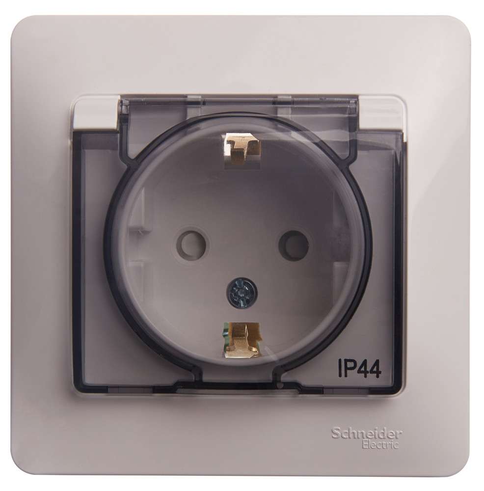 Розетка Systeme Electric (ранее Schneider Electric) серии Glossa (в сборе, цвет белый) одинарная с заземлением, шторками и крышкой подходит для сетей 250 В, на ток 16 А. - Изделие со степенью защиты IP44 обеспечит безопасность использования в ванной и на кухне. - Заземляющий контакт обеспечивает дополнительную защиту от удара электрическим током. При наличии заземления электрический потенциал уходит в землю, защищая человека. - Выполнен из материала PС+ASA, стойкого к УФ-излучению и появлению царапин.