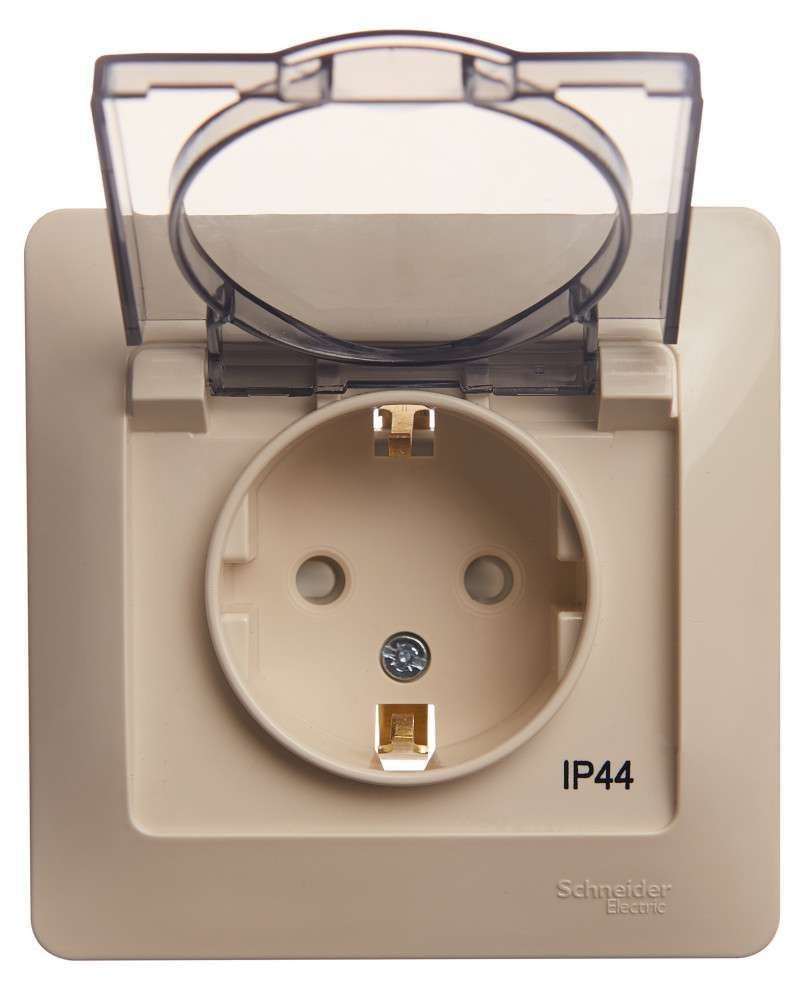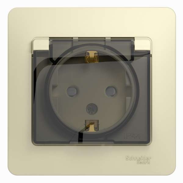 Розетка Systeme Electric (ранее Schneider Electric) серии Glossa (в сборе, цвет бежевый) одинарная с заземлением, шторками и крышкой подходит для сетей 250 В, на ток 16 А. - Изделие со степенью защиты IP44 обеспечит безопасность использования в ванной и на кухне. - Заземляющий контакт обеспечивает дополнительную защиту от удара электрическим током. При наличии заземления электрический потенциал уходит в землю, защищая человека. - Выполнен из материала PС+ASA, стойкого к УФ-излучению и появлению царапин.