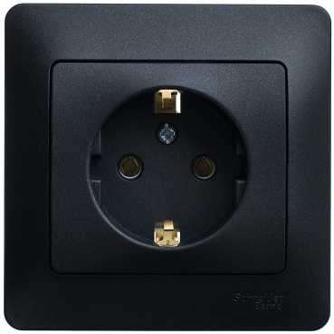 Розетка Systeme Electric (ранее Schneider Electric) серии Glossa (в сборе, цвет антрацит) одинарная без заземления и без шторок подходит для сетей 250 В, на ток 16 А. - Выполнен из материала PС+ASA, стойкого к УФ-излучению и появлению царапин. - Эргономичные клеммы розеток расположены в один ряд.