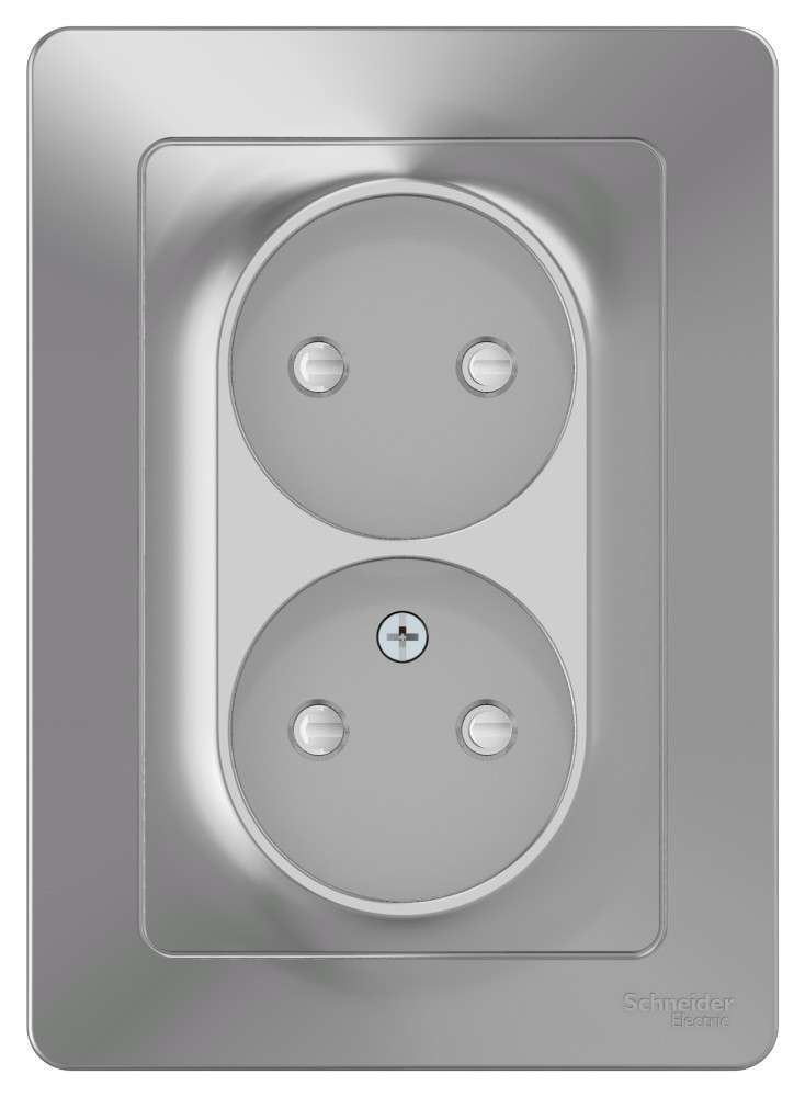 Розетка Systeme Electric (ранее Schneider Electric) BLANCA (алюминий, скрытой установки) двухместная, без заземления, со шторками предназначена для сетей до 250В, на ток до 16А. Двухместная розетка позволяет подключить два устройства в одном месте. Шторки обеспечат дополнительную безопасность в помещении, где находятся дети.
