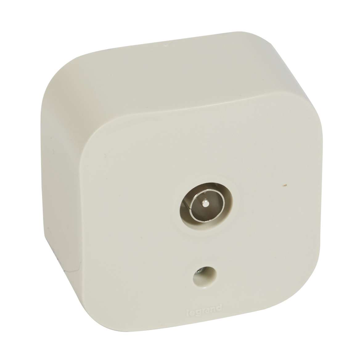 ТВ-розетка тип звезда Legrand Quteo, цвет слоновая кость.Используется для подключения одного ТВ приемника к антенне, а также для организации телевизионной сети по схеме звезда, когда к каждому телевизору прокладывается своя линия от источника сигнала.Особенности: - Частотный диапазон 0-862МГц.Подходит для цифрового телевиденья- Комплектуется инструкцией.Особенности серии Quteo:- Современный формат накладного монтажа- Механизм изготовлены из высококачественного поликарбоната, не проводит электрический ток, не поддерживает горение.- Простое выравнивания изделий при установке в ряд,благодаря специальной форме основания.- Корпус ударопрочный из пластичного полипропилена стойкого к внешним воздействиям.- Перфорация на корпусе для безошибочного вырезания отверстий при монтаже открытой проводки- В основании преднарезаны 4 отверстия для подвода кабеля при монтаже скрытой проводки