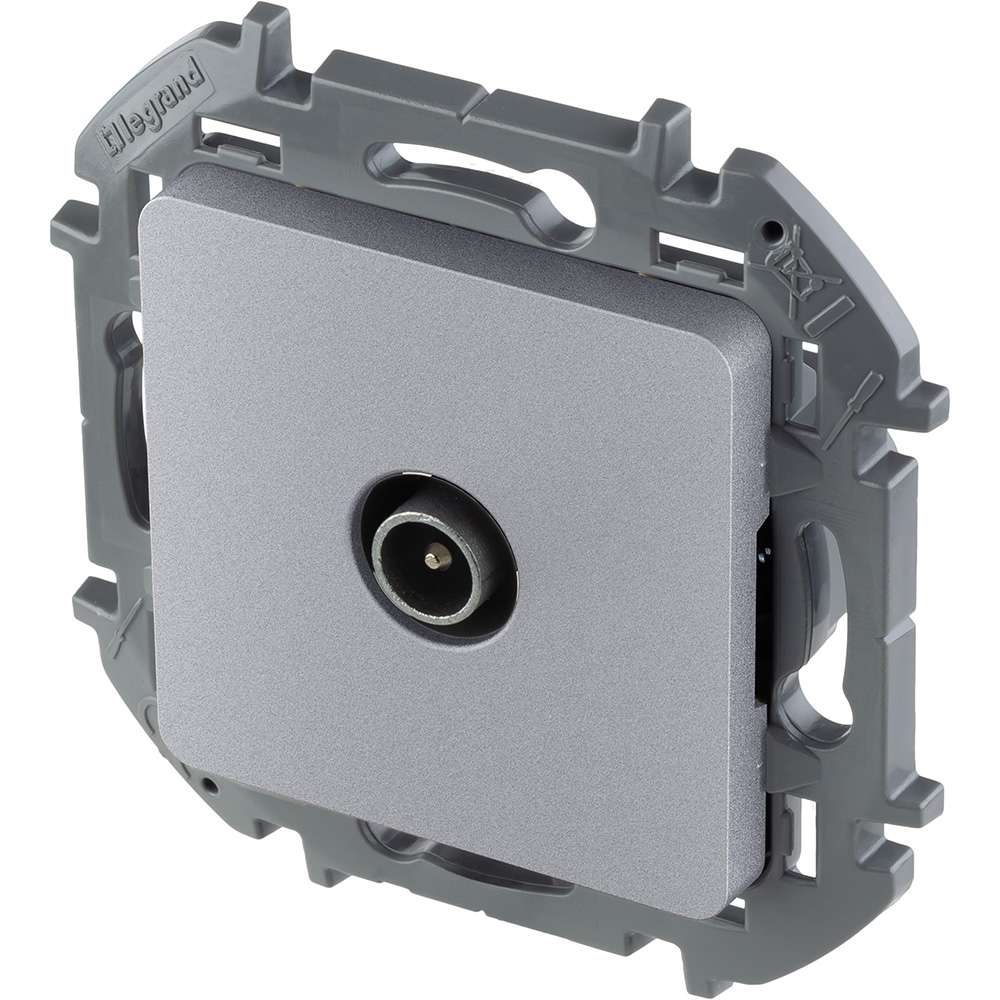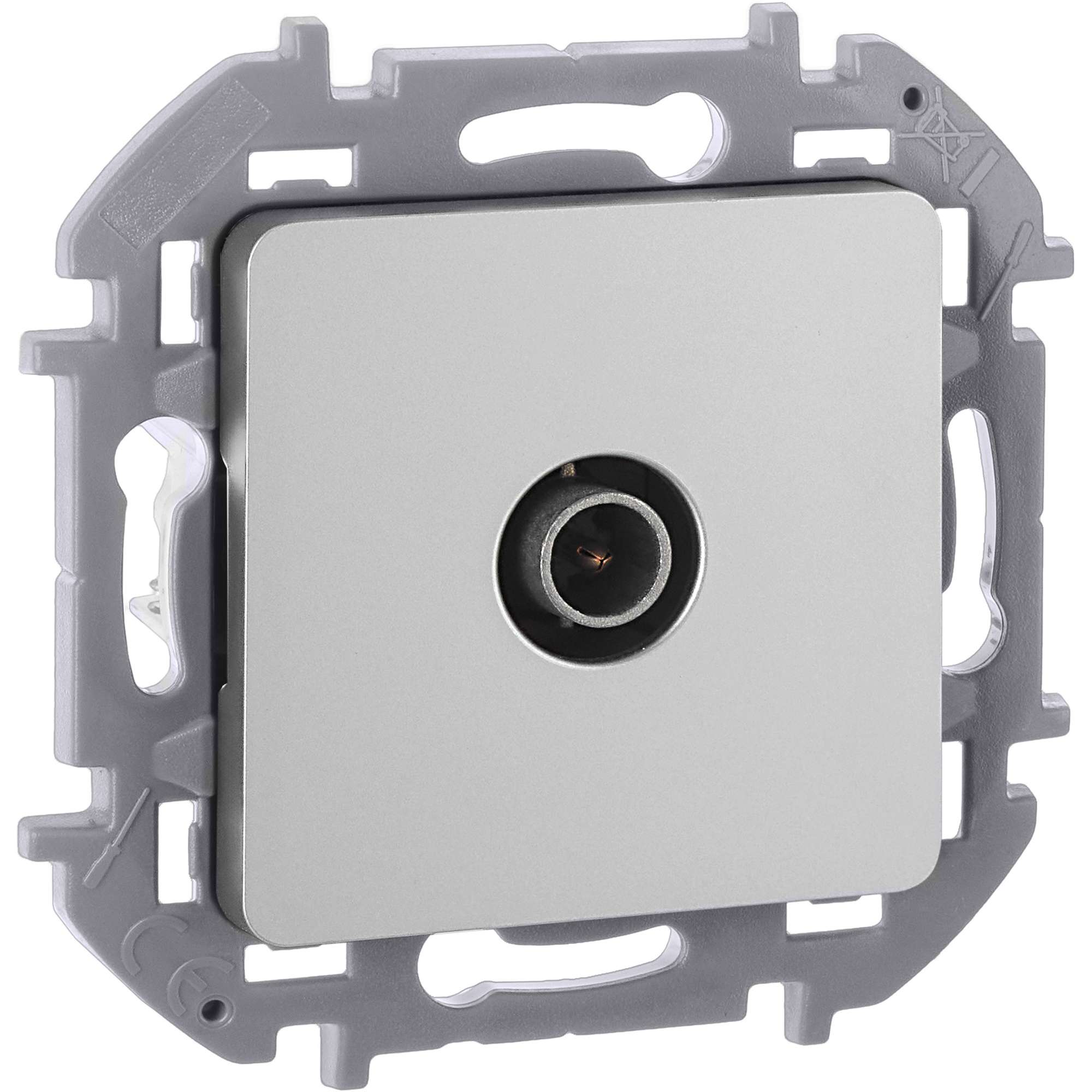 Розетка телевизионная Legrand Inspiria для скрытого монтажа, для схемы звезда, 1 дБ 4-2400 МГц, поддержка обратного питания для активных антенн до 500мА, цвет Алюминий. Используется для подключения одного ТВ приемника к антенне, а также для организации телевизионной сети по схеме звезда, когда к каждому телевизору прокладывается своя линия от источника сигнала. Особенности изделия: - Расширенный частотный диапазон 4-2400 МГц обеспечивает уверенную передачу сигнала в сетях различной конфигурации. - Поддержка обратного питания POWER PASS до 500мА позволяют запитывать активные антенны без дополнительной проводки. - Корпус механизма изготовлен из металлического сплава, обладает степенью экранирования Class A и защищает сигнал от электромагнитных помех. - Присоединение коаксиального кабеля к розетке осуществляется удобным безвинтовым коннектором. - Лицевая панель изготовлена из качественного пластика ABS, устойчивого к загрязнению и воздействию УФ-излучения.
