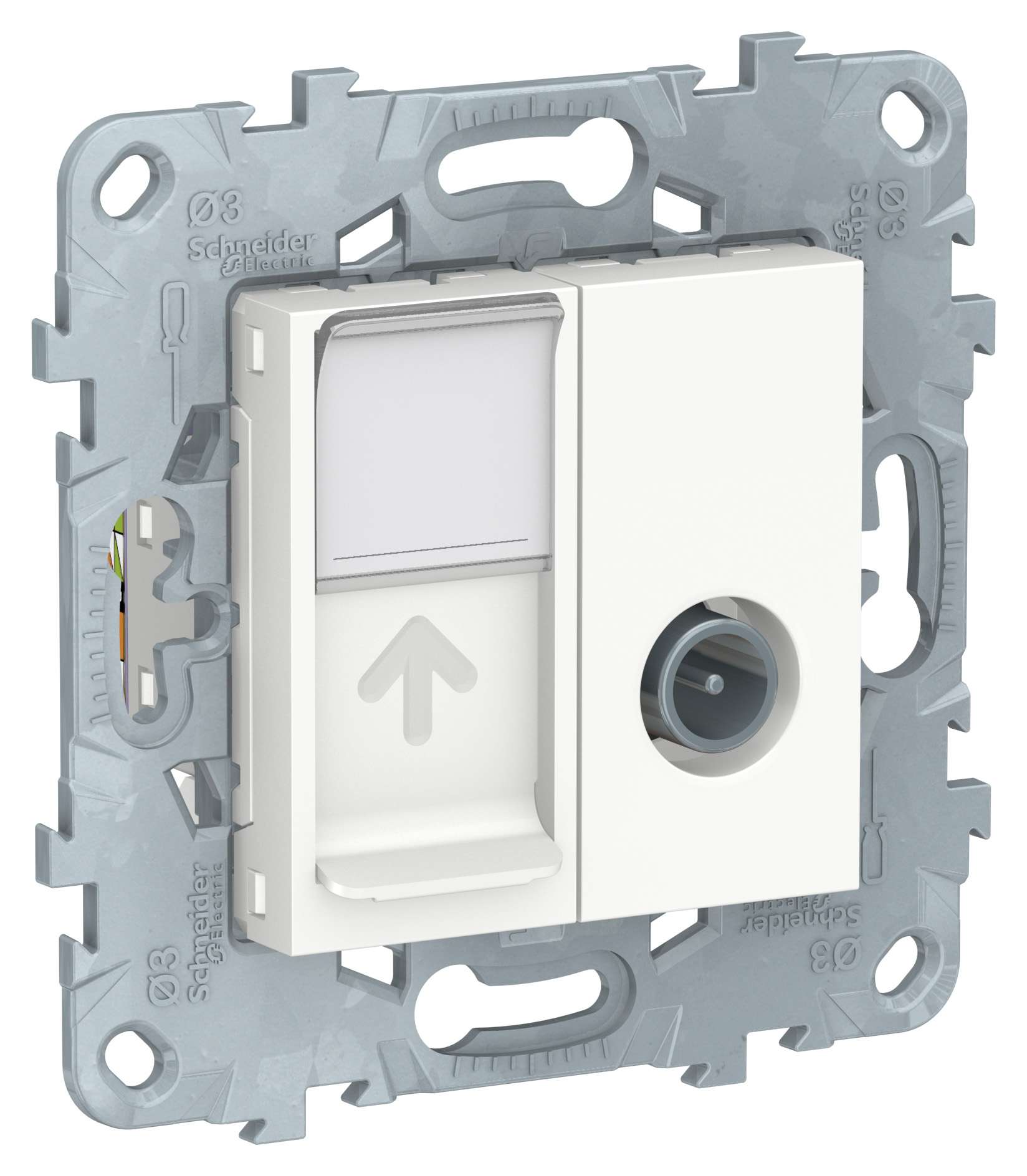Розетка RJ45 категория 6 и TV Schneider Electric UNICA NEW (белый) одиночная. - Привлекательный внешний вид. - Сокращение времени монтажа. - Термопластик АBS, устойчивый к УФ излучениям.