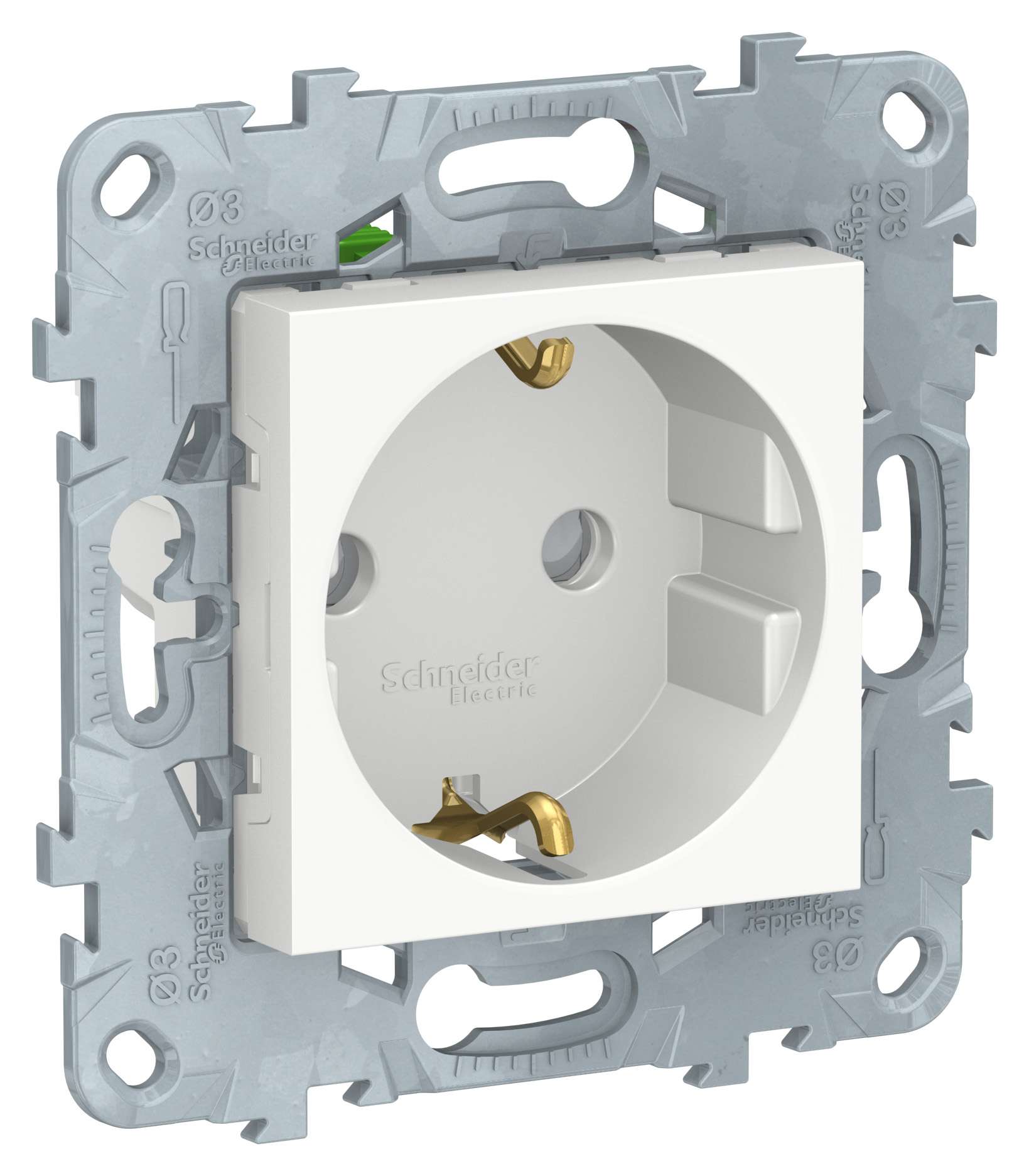 Розетка Schneider Electric UNICA NEW (белый) с заземлением, со шторками, с быстрозажимными клеммами предназначена для сетей до 250 В на ток до 16 А. - Привлекательный внешний вид. - Сокращение времени монтажа. - Заземление и шторки обеспечивают дополнительную безопасность при косвенном прикосновении.