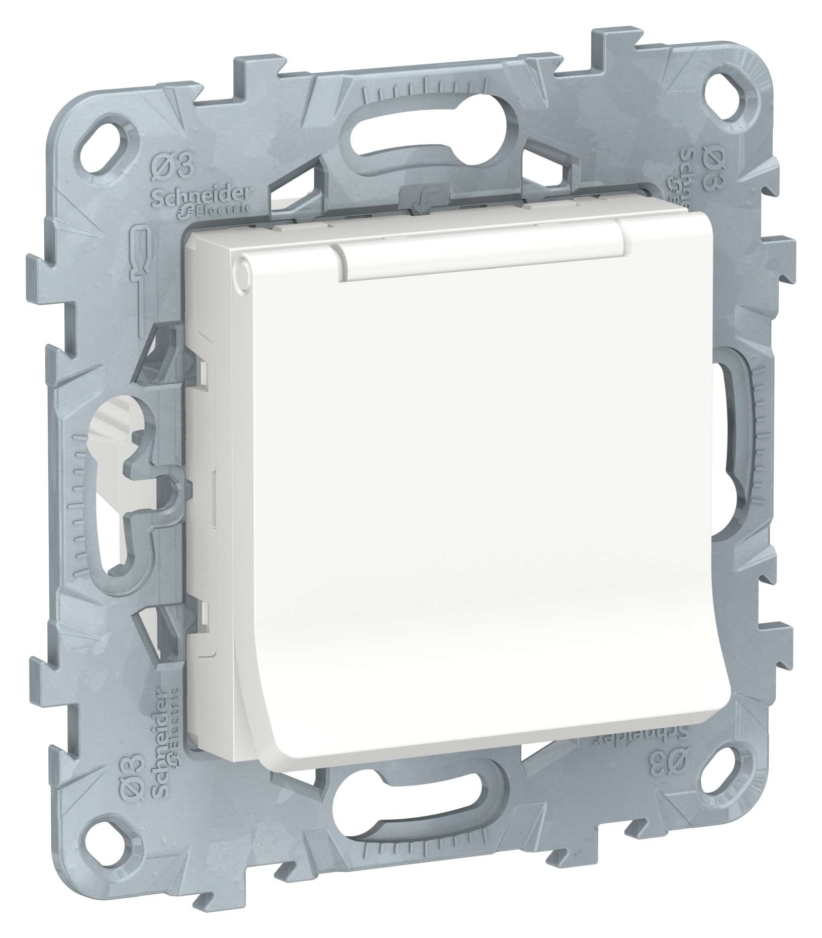 Розетка Schneider Electric UNICA NEW (белый) с заземлением, со шторками, с крышкой предназначена для сетей до 250 В на ток до 16 А. - Привлекательный внешний вид. - Термопластик АBS, устойчивый к УФ излучениям. - Заземление и шторки обеспечивают дополнительную безопасность при косвенном прикосновении.
