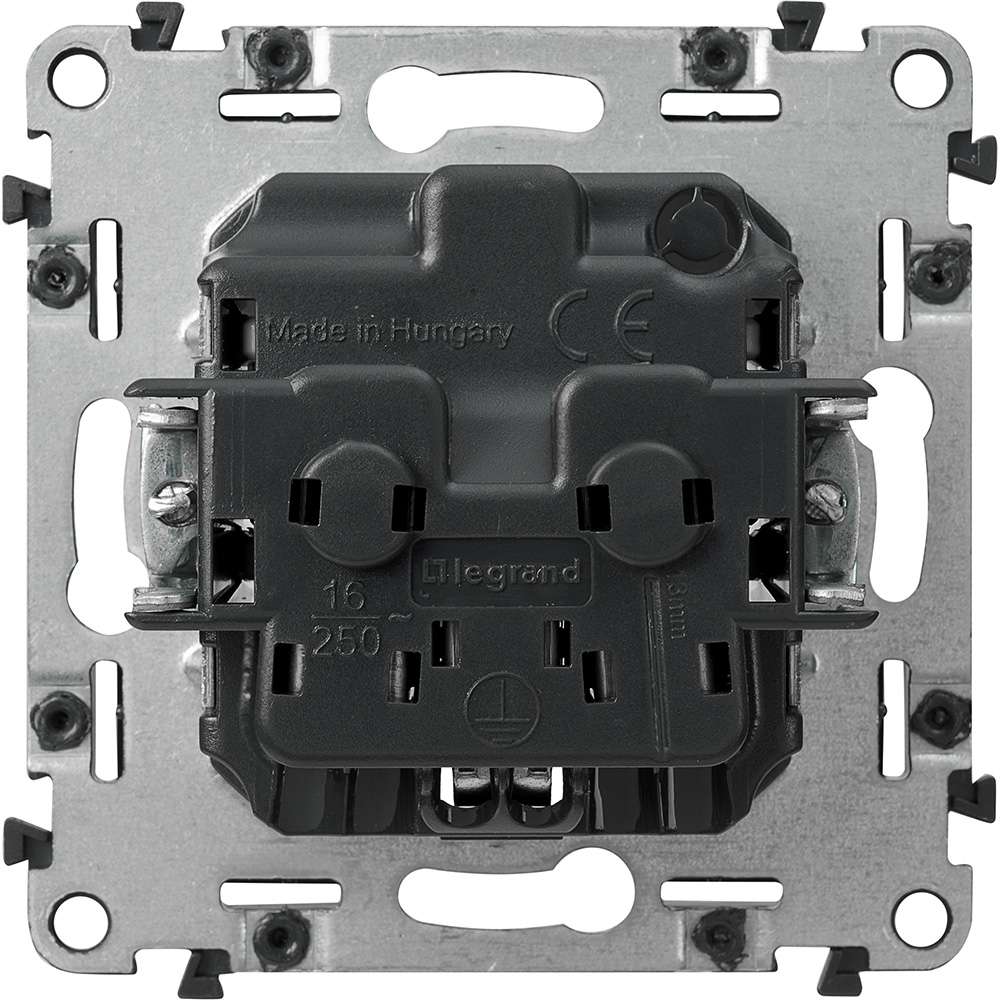 Силовая розетка 16A-250В~ немецкого стандарта 2К+З с защитными шторками, безвинтовые зажимы Legrand Valena In'Matic