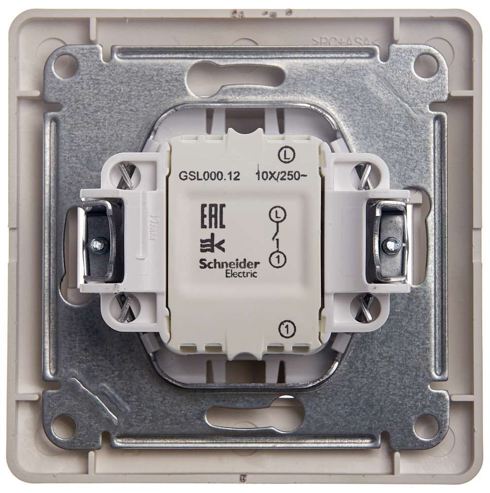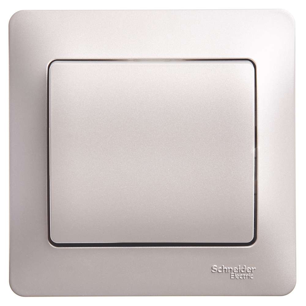 Выключатель Systeme Electric (ранее Schneider Electric) серии Glossa (в сборе, цвет платина) одноклавишный подходит для сетей 250 В, на ток 10 А. - Выполнен из материала PС+ASA, стойкого к УФ-излучению и появлению царапин. - Эргономичные клеммы расположены в два ряда: сверху и снизу.