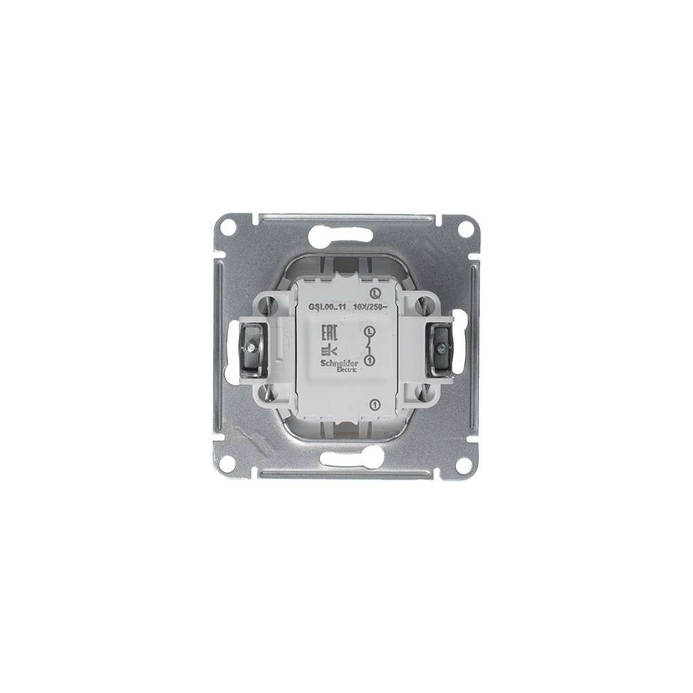 Механизм Systeme Electric (ранее Schneider Electric) серии Glossa (цвет платина) выключателя 1-клавишного подходит для сетей 250 В, на ток 10 А. - Выполнен из материала PС+ASA, стойкого к УФ-излучению и появлению царапин. - Эргономичные клеммы расположены в два ряда: сверху и снизу.