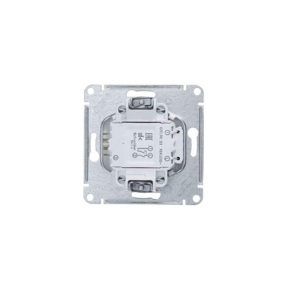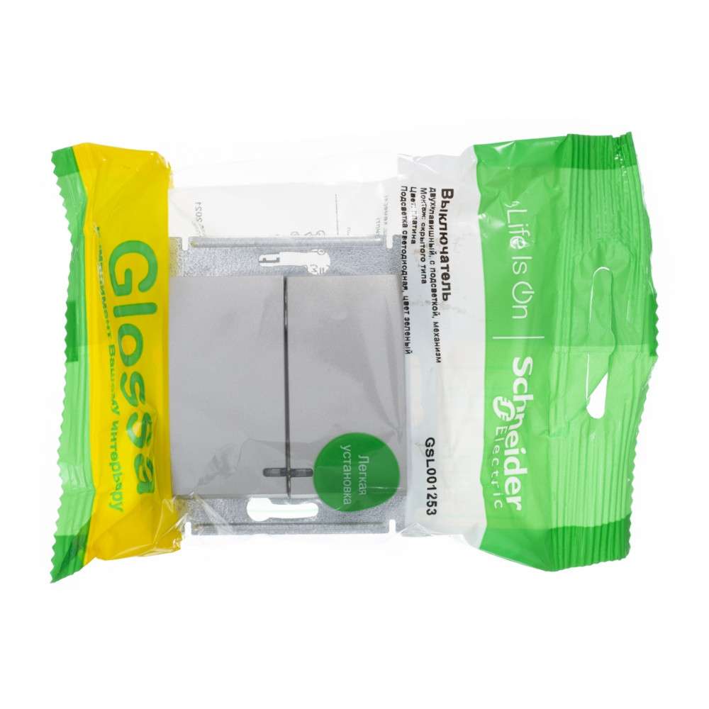 Механизм Systeme Electric (ранее Schneider Electric) серии Glossa (цвет платина) выключателя 2-клавишного c подсветкой подходит для сетей 250 В, на ток 10 А. - Благодаря современной светодиодной подсветке зеленого цвета изделие легко найти в темноте. - Двухклавишный выключатель позволяет управлять двумя источниками света с одной точки. - Выполнен из материала PС+ASA, стойкого к УФ-излучению и появлению царапин. - Эргономичные клеммы расположены в два ряда: сверху и снизу.
