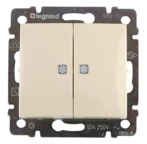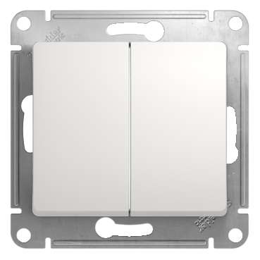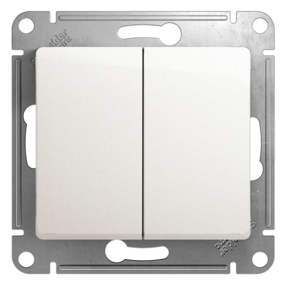 Выключатель Systeme Electric (ранее Schneider Electric) серии Glossa (в сборе, цвет молочный) двухклавишный подходит для сетей 250 В, на ток 10 А. - Двухклавишный выключатель позволяет управлять двумя источниками света с одной точки. - Выполнен из материала PС+ASA, стойкого к УФ-излучению и появлению царапин. - Эргономичные клеммы расположены в два ряда: сверху и снизу.