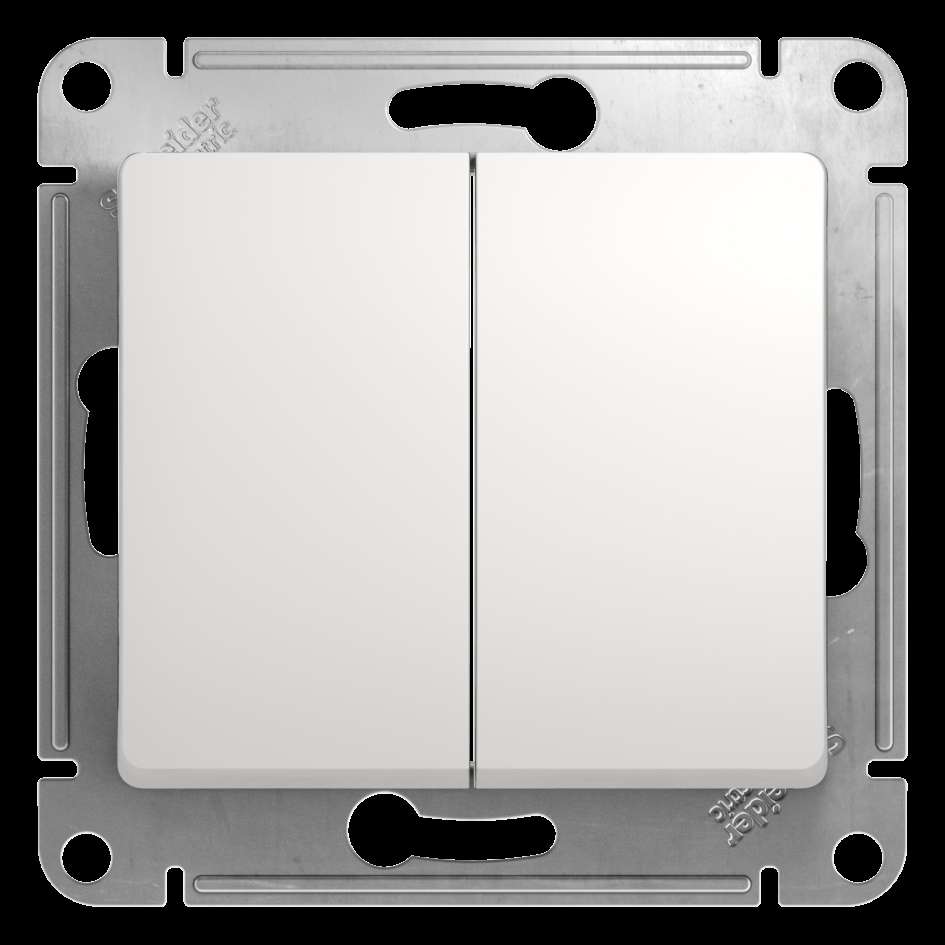 Механизм Systeme Electric (ранее Schneider Electric) серии Glossa (цвет белый) переключателя 2-клавишного подходит для сетей 250 В, на ток 10 А. - Переключатель позволяют управлять одним источником света с двух точек. - Выполнен из материала PС+ASA, стойкого к УФ-излучению и появлению царапин. - Эргономичные клеммы расположены в два ряда: сверху и снизу.