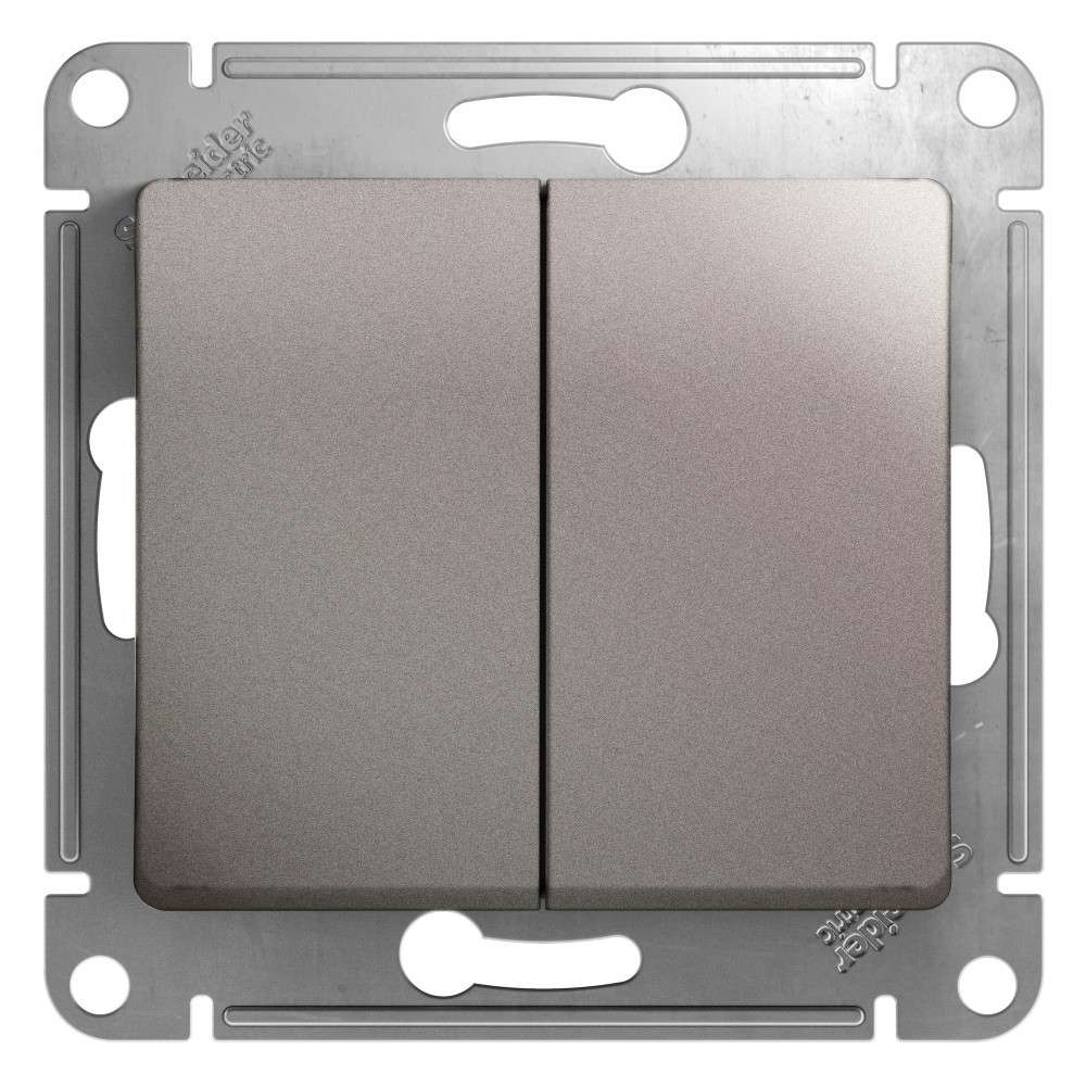 Механизм Systeme Electric (ранее Schneider Electric) серии Glossa (цвет алюминий) выключателя 2-клавишного подходит для сетей 250 В, на ток 10 А. - Двухклавишный выключатель позволяет управлять двумя источниками света с одной точки. - Выполнен из материала PС+ASA, стойкого к УФ-излучению и появлению царапин. - Эргономичные клеммы расположены в два ряда: сверху и снизу.