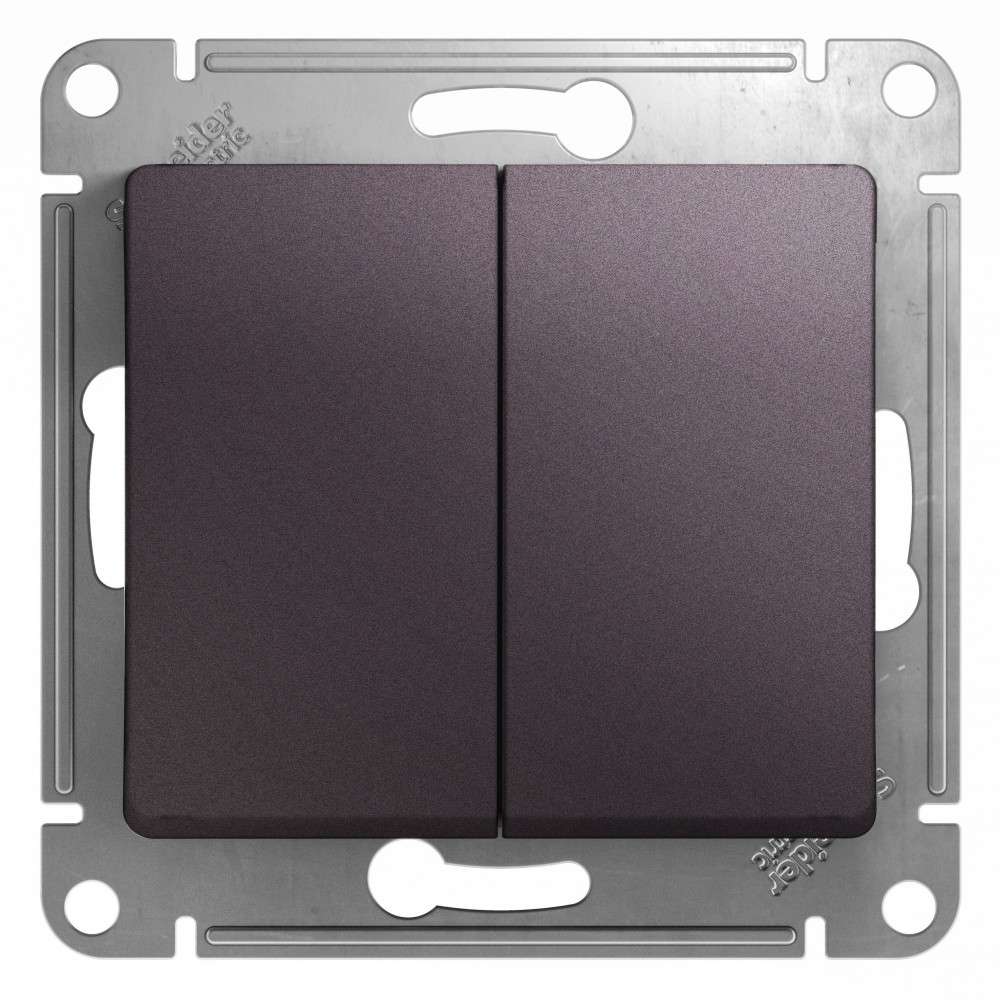 Механизм Systeme Electric (ранее Schneider Electric) серии Glossa (цвет сиреневый туман) выключателя 2-клавишного подходит для сетей 250 В, на ток 10 А. - Двухклавишный выключатель позволяет управлять двумя источниками света с одной точки. - Выполнен из материала PС+ASA, стойкого к УФ-излучению и появлению царапин. - Эргономичные клеммы расположены в два ряда: сверху и снизу.