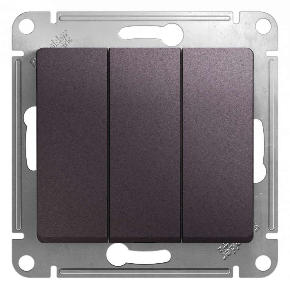 Механизм Systeme Electric (ранее Schneider Electric) серии Glossa (цвет сумеречный туман) выключателя 3-клавишного подходит для сетей 250 В, на ток 10 А. - Трёхклавишный выключатель позволяет управлять тремя источниками света из одной точки. - Выполнен из материала PС+ASA, стойкого к УФ-излучению и появлению царапин. - Эргономичные клеммы расположены в два ряда: сверху и снизу.