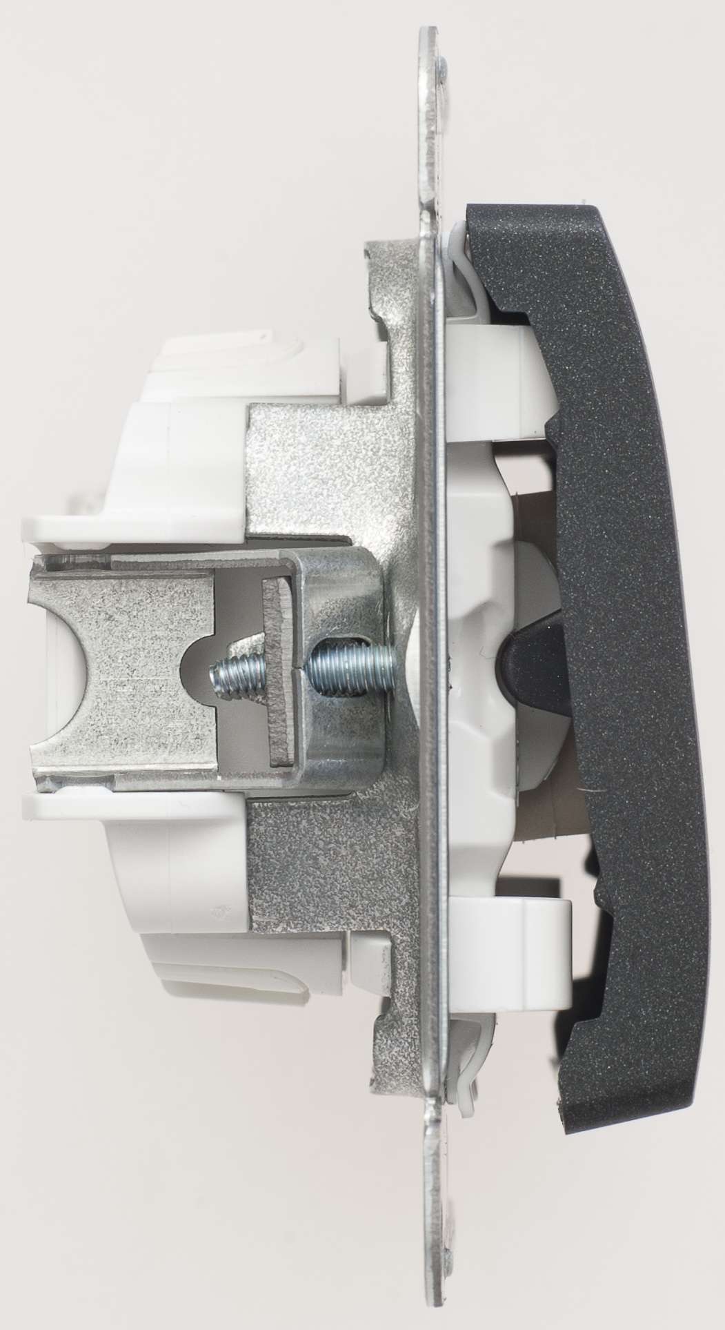 Механизм Systeme Electric (ранее Schneider Electric) серии Glossa (цвет антрацит) выключателя 1-клавишного с самовозвратом подходит для сетей 250 В, на ток 10 А. - Выполнен из материала PС+ASA, стойкого к УФ-излучению и появлению царапин. - Эргономичные клеммы расположены в два ряда: сверху и снизу.