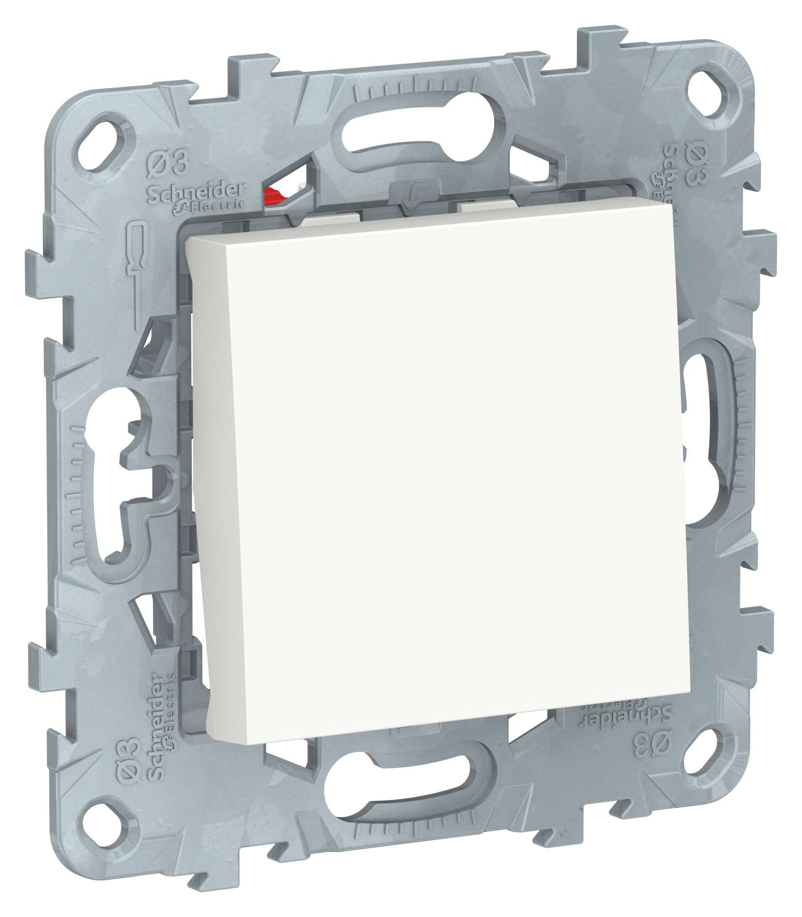 Переключатель одноклавишный Schneider Electric UNICA NEW (белый) перекрёстный без подсветки предназначен для сетей до 250 В на ток до 10 А. - 1 переключающий контакт. - Специальные направляющие для облегчения ввода кабеля. - Переключатель позволяет управлять одним источником света из двух точек.