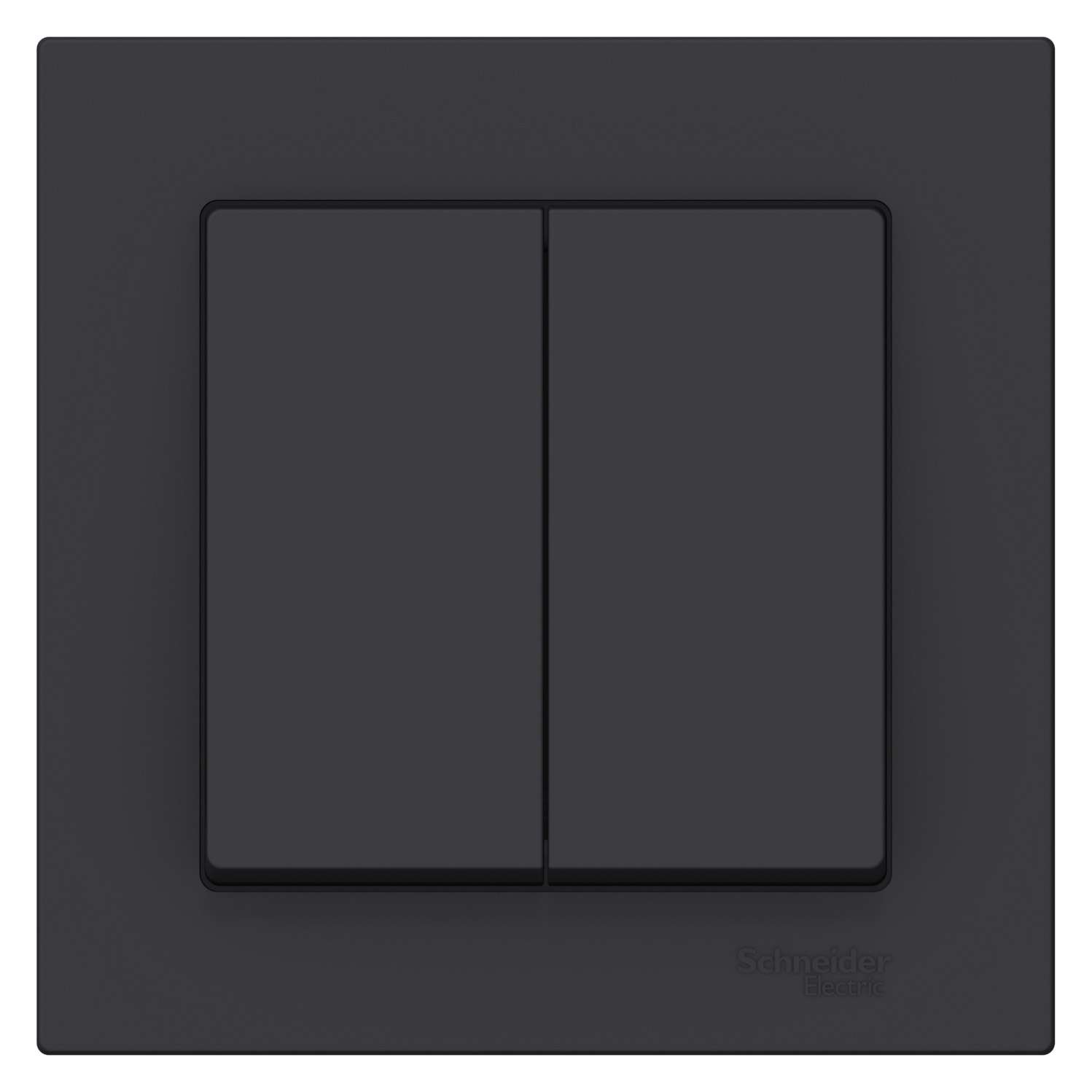 Выключатель Systeme Electric (ранее Schneider Electric) серии AtlasDesign (в сборе, цвет карбон) 2-клавишный подходит для сетей 250 В, на ток 10 А. - Двухклавишный выключатель позволяет управлять двумя источниками света с одной точки. - Лицевые детали из качественного ABS-пластика, устойчивого к царапинам и УФ-излучению. - Изделие поставляется в комплекте с рамкой того же цвета. - Благодаря покрытию «soft touch» к изделию приятно прикасаться.