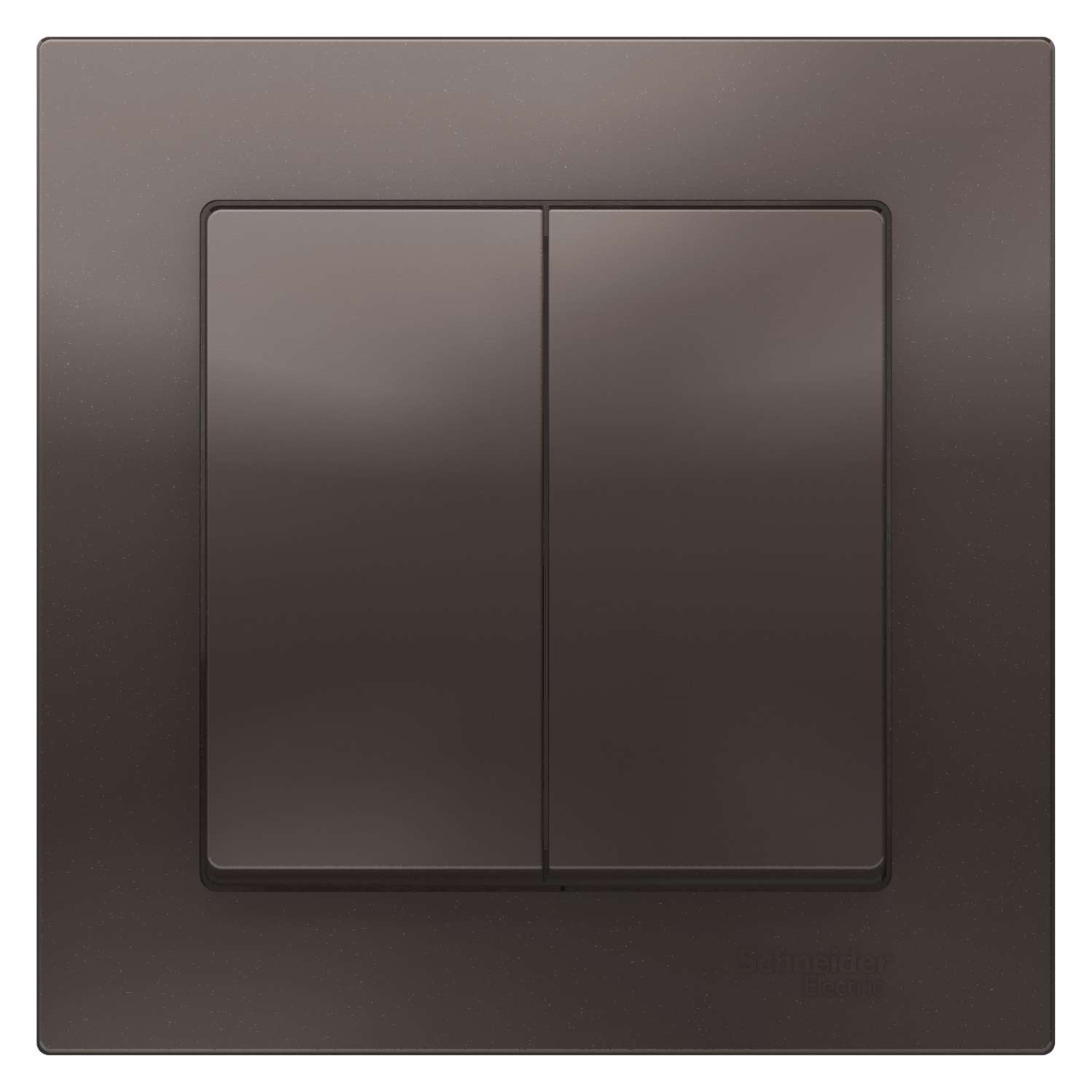 Выключатель Systeme Electric (ранее Schneider Electric) серии AtlasDesign (в сборе, цвет мокко) 2-клавишный подходит для сетей 250 В, на ток 10 А. - Двухклавишный выключатель позволяет управлять двумя источниками света с одной точки. - Лицевые детали из качественного ABS-пластика, устойчивого к царапинам и УФ-излучению. - Изделие поставляется в комплекте с рамкой того же цвета. - Усиленные прямые монтажные лапки для лучшей фиксации механизма в монтажной коробке.