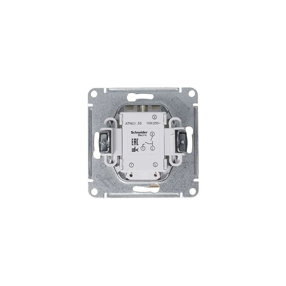 Механизм Systeme Electric (ранее Schneider Electric) серии AtlasDesign в цвете алюминий выключателя 2-клавишного c подсветкой подходит для сетей 250 В, на ток 10 А. - Благодаря светодиодной подсветке синего цвета изделие легко найти в темноте. - Двухклавишный выключатель позволяет управлять двумя источниками света с одной точки. - Лицевые детали из качественного ABS-пластика, устойчивого к царапинам и УФ-излучению. - Усиленные прямые монтажные лапки для лучшей фиксации механизма в монтажной коробке.