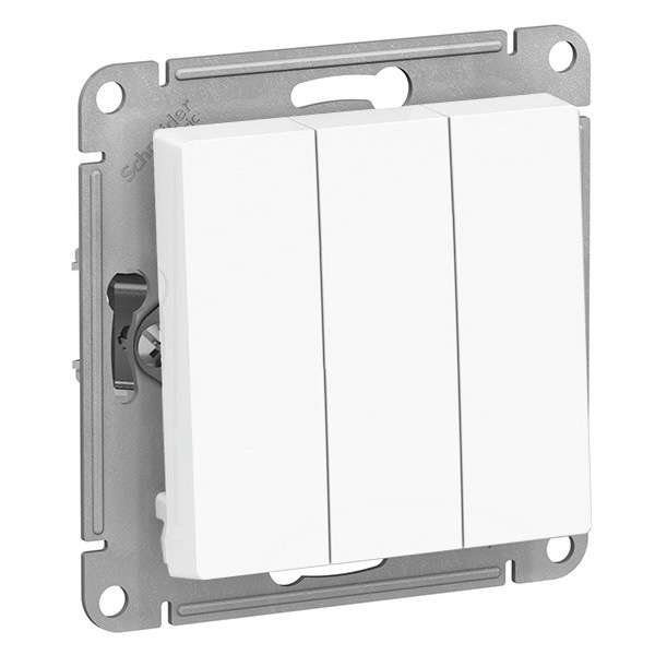 Механизм Systeme Electric (ранее Schneider Electric) серии AtlasDesign в цвете грифель выключателя 3-клавишного подходит для сетей 250 В, на ток 10 А. - Трёхклавишный выключатель позволяет управлять тремя источниками света из одной точки. - Лицевые детали из качественного ABS-пластика, устойчивого к царапинам и УФ-излучению. - Усиленные прямые монтажные лапки для лучшей фиксации механизма в монтажной коробке.