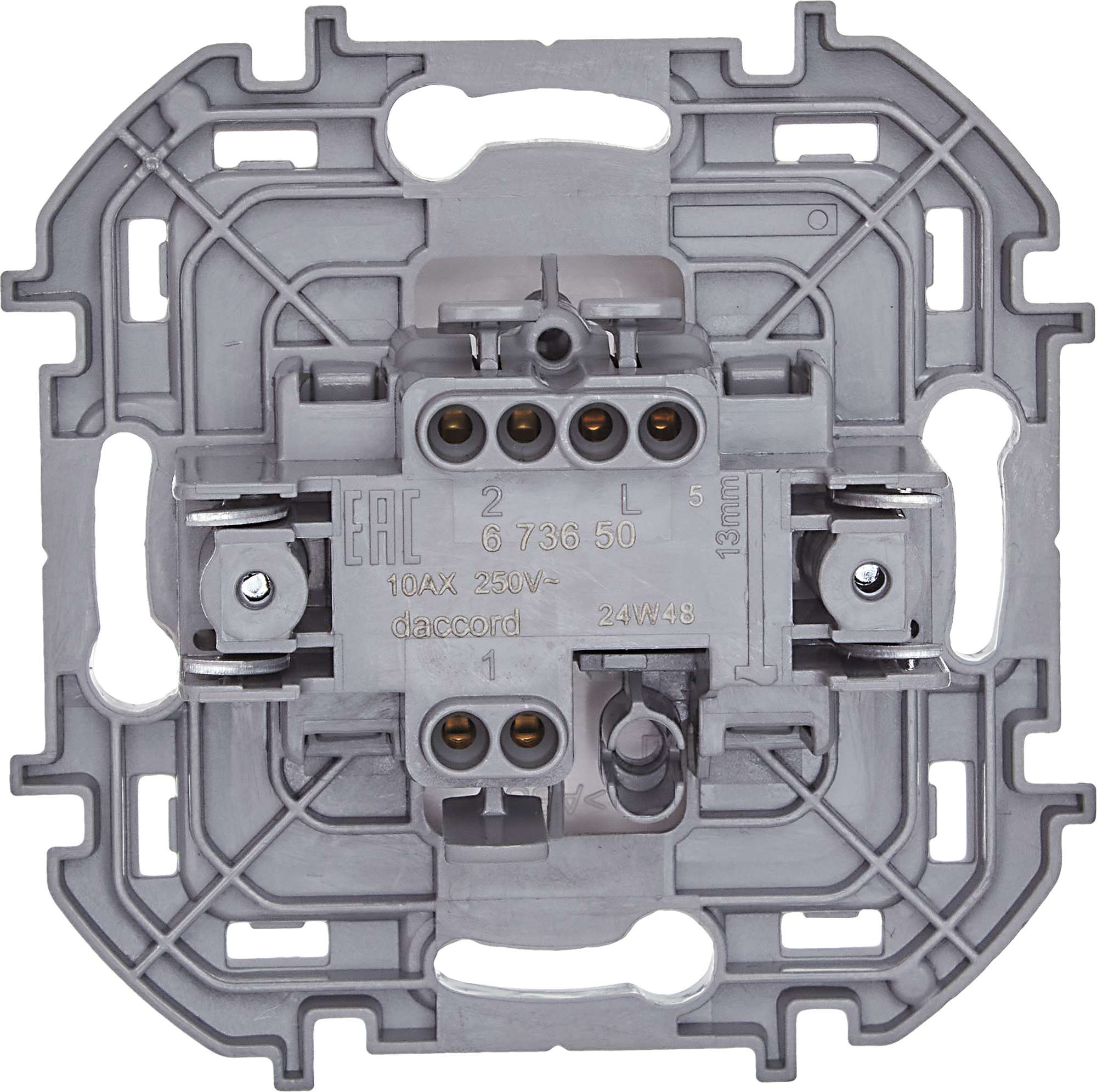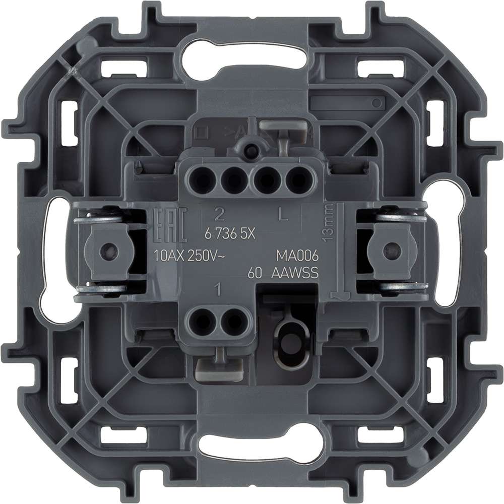 Переключатель одноклавишный Legrand Inspiria для скрытого монтажа, цвет Белый, номинальный ток 10 А, напряжение 250В. Предназначен для установки в электрических сетях жилых и общественных зданий и используется для управления приборами освещения, вентиляции и т.д. Используется для управления нагрузкой с одного, двух или более мест (совместно с промежуточными выключателями). Особенности изделия: - Компактный механизм с глубиной всего 20 мм. комфортно размещается в различных монтажных коробках. - Материал клавиши - глянцевый пластик АБС, стоек к выгоранию и загрязнениям. - Все токоведущие части выключателя имеют защиту от случайного прикосновения. - Безвинтовые зажимы для присоединения проводов обеспечивают быстрое подключение и отключение, гарантируют надежное и долговечное соеднинение и не требуют обслуживания. - Удобные широкие толкатели облегчают работу по демонтажу провода. - Улучшенная эргономика снижает вероятность искрения при коммутации светодиодов. - Ход клавиши короткий, не громкий.