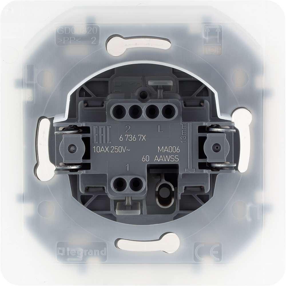 Переключатель одноклавишный пылевлагозащитный Legrand Inspiria для скрытого монтажа, цвет Антрацит, номинальный ток 10 А, напряжение 250В, степень пылевлагозащиты IP44. Предназначен для установки в местах с повышенной влажностью (например, ванные комнаты, веранды, кладовки, подвалы, коридоры и т.п.) и используется для управления нагрузкой с одного, двух или более мест (совместно с промежуточными выключателями). Особенности изделия: - Компактный механизм с глубиной всего 20 мм. комфортно размещается в различных монтажных коробках. - Материал клавиши - глянцевый пластик АБС, стоек к выгоранию и загрязнениям. - Все токоведущие части выключателя имеют защиту от случайного прикосновения. - Безвинтовые зажимы для присоединения проводов обеспечивают быстрое подключение и отключение, гарантируют надежное и долговечное соеднинение и не требуют обслуживания. - Удобные широкие толкатели облегчают работу по демонтажу провода. - Улучшенная эргономика снижает вероятность искрения при коммутации светодиодов. - Ход клавиши короткий, не громкий. - Благодаря наличию защитной мембраны обладает степенью пыле-влагозащиты IP44 и подходит для размещения в местах с повышенной влажностью.