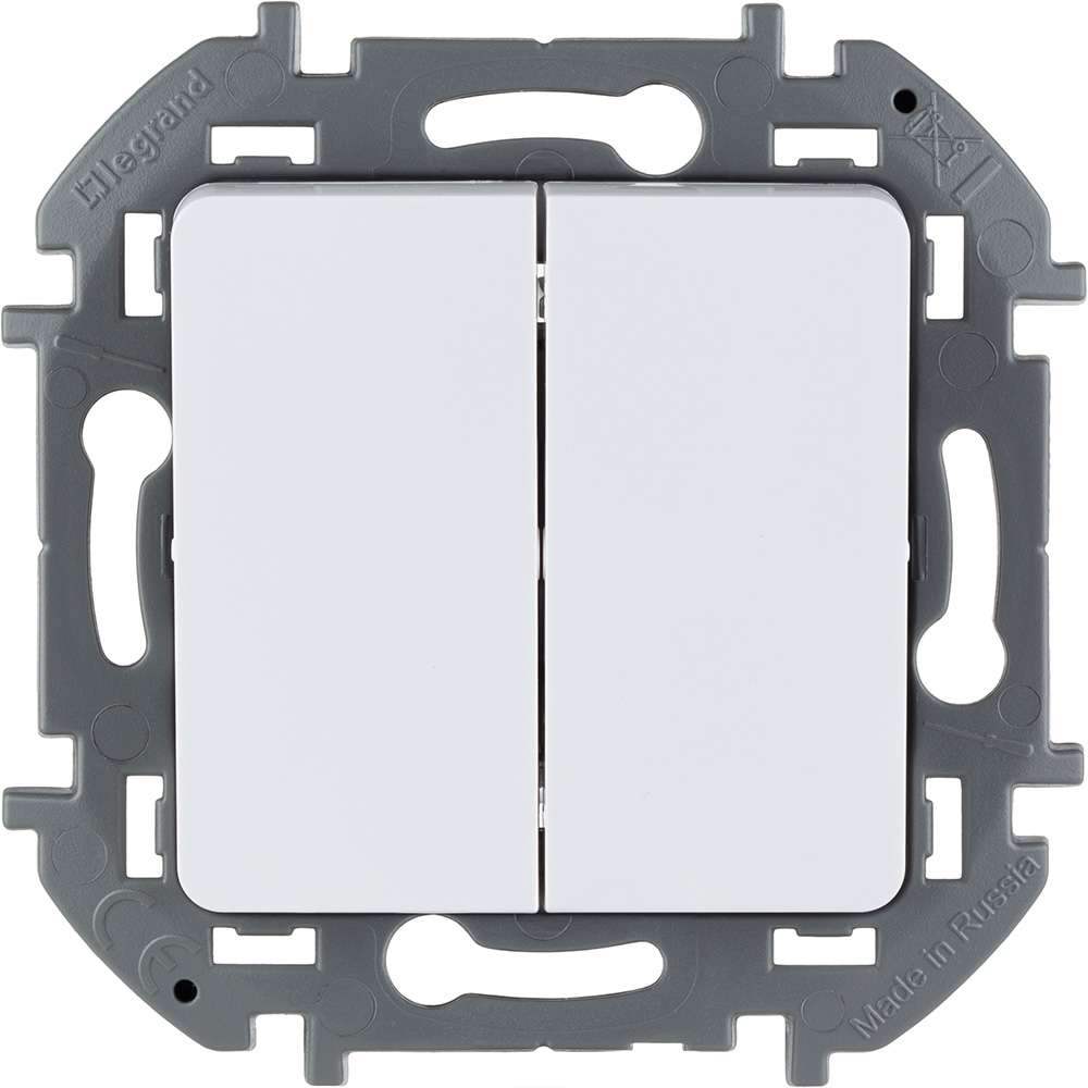 Выключатель двухклавишный Legrand Inspiria для скрытого монтажа, цвет Белый, номинальный ток 10 А, напряжение 250В. Предназначен для установки в электрических сетях жилых и общественных зданий и используется для управления приборами освещения, вентиляции и т.д. Используется для независимой коммутации двух нагрузок. Особенности изделия: - Компактный механизм с глубиной всего 20 мм. комфортно размещается в различных монтажных коробках. - Материал клавиш - глянцевый пластик АБС, стоек к выгоранию и загрязнениям. - Все токоведущие части выключателя имеют защиту от случайного прикосновения. - Безвинтовые зажимы для присоединения проводов обеспечивают быстрое подключение и отключение, гарантируют надежное и долговечное соеднинение и не требуют обслуживания. - Удобные широкие толкатели облегчают работу по демонтажу провода. - Улучшенная эргономика снижает вероятность искрения при коммутации светодиодов. - Ход клавиши короткий, не громкий.