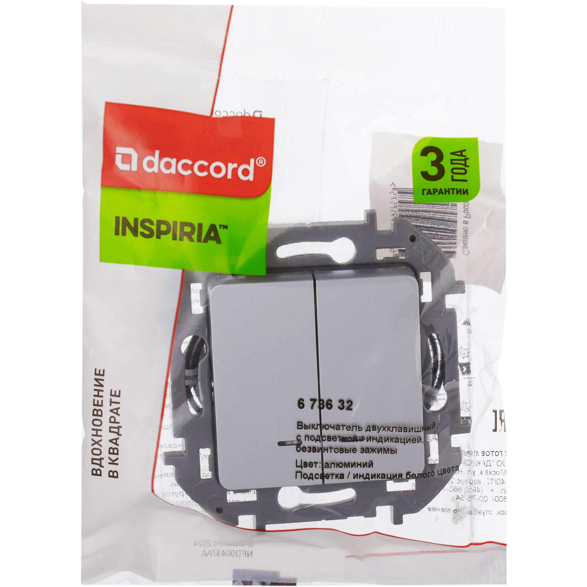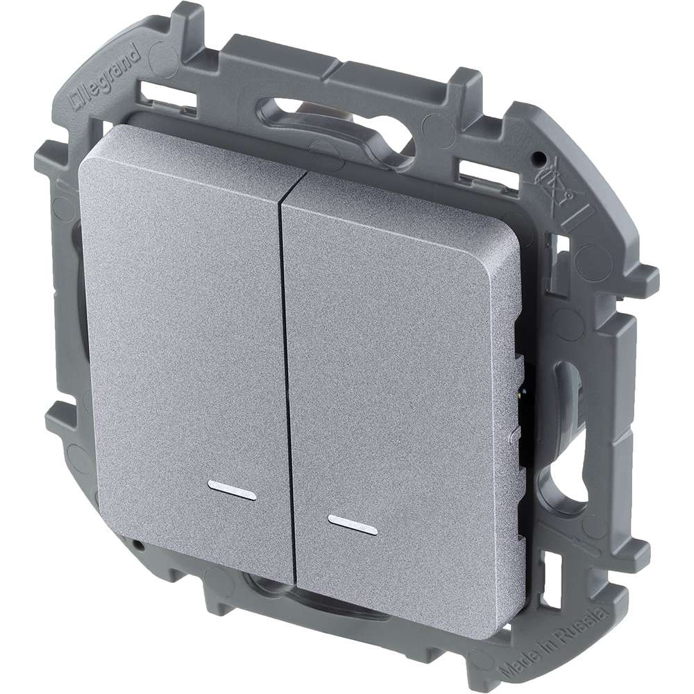 Выключатель двухклавишный с подсветкой/индикацией Legrand Inspiria для скрытого монтажа, цвет Алюминий, номинальный ток 10 А, напряжение 250В. Предназначен для установки в электрических сетях жилых и общественных зданий и используется для управления приборами освещения, вентиляции и т.д. Используется для независимой коммутации двух нагрузок с одного места. Оснащен двумя светодиодными лампами для подсветки или индикации. Особенности изделия: - Компактный механизм с глубиной всего 20 мм. комфортно размещается в различных монтажных коробках. - Материал клавиш - глянцевый пластик АБС, стоек к выгоранию и загрязнениям. - Все токоведущие части выключателя имеют защиту от случайного прикосновения. - Безвинтовые зажимы для присоединения проводов обеспечивают быстрое подключение и отключение, гарантируют надежное и долговечное соеднинение и не требуют обслуживания. - Удобные широкие толкатели облегчают работу по демонтажу провода. - Улучшенная эргономика снижает вероятность искрения при коммутации светодиодов. - Ход клавиши короткий, не громкий. - Две универсальные LED-лампы белого цвета с низким энергопотреблением 0.125мА и возможностью замены - Благодаря свободной схеме подключения, лампа подсветки либо облегчает ориентирование в темноте, либо информирует о включении нагрузки. - Клавиши оборудованы линзами для заметного светового сигнала подсветки или индикации Особенности серии Inspiria: Суппорт и корпус механизма изготовлены из высококачественного поликарбоната, обладают высокой прочностью, не проводят электрический ток, не поддерживают горение. Специальный профиль внешнего контура суппорта обеспечивает простоту выравнивания и безошибочность многопостового монтажа. Скрытые острые крепёжные лапки с широким углом раскрытия обеспечивают травмобезопастный монтаж и надёжную фиксацию в монтажной коробке. Удобная и информативная маркировка сокращает время на подготовку проводов.