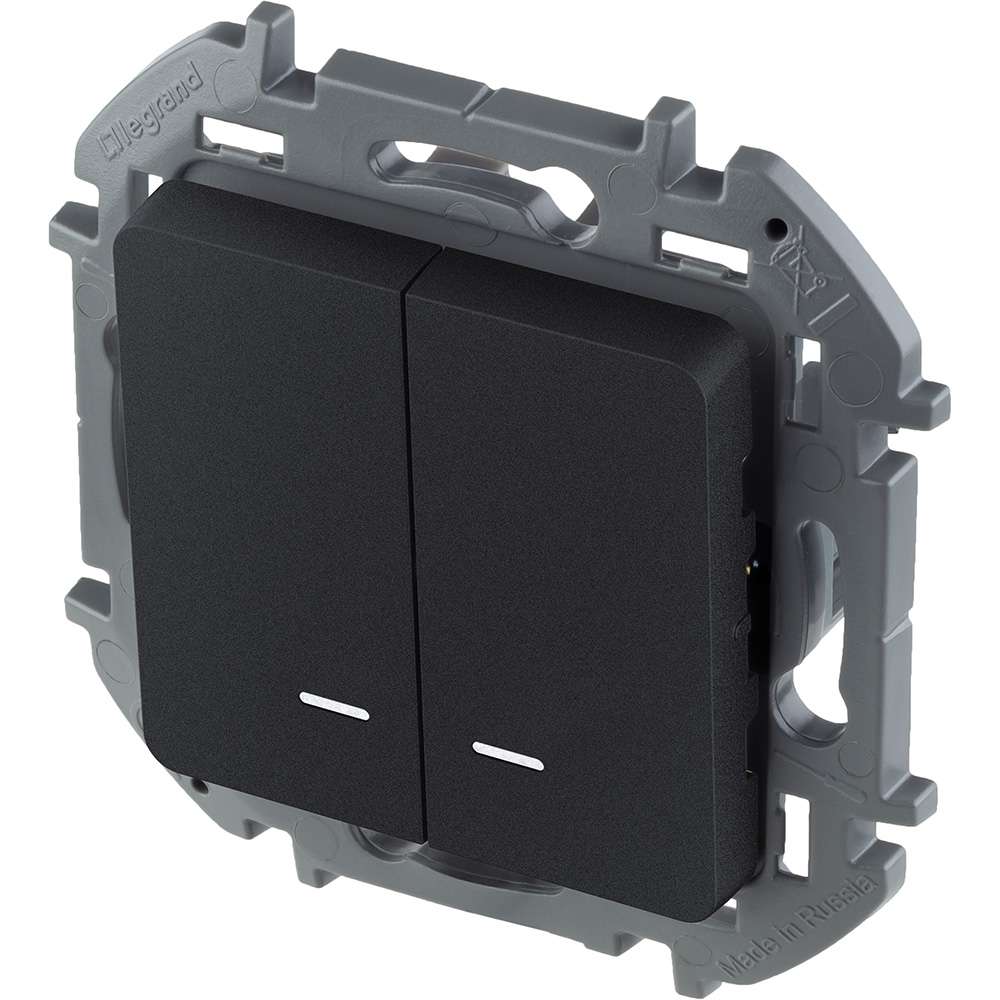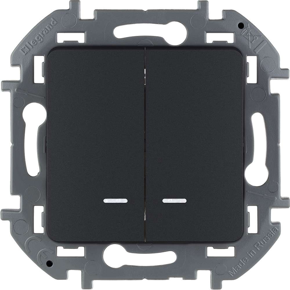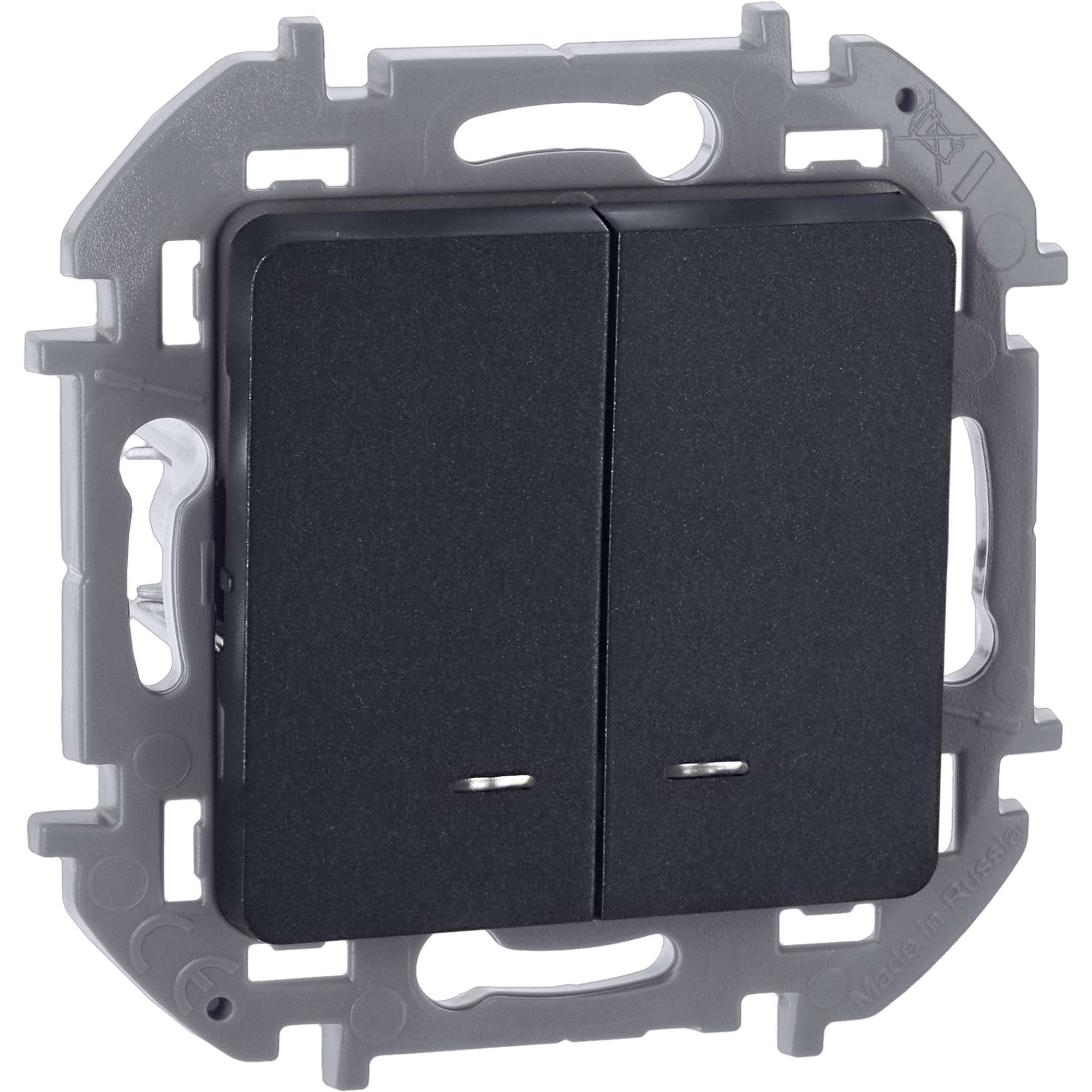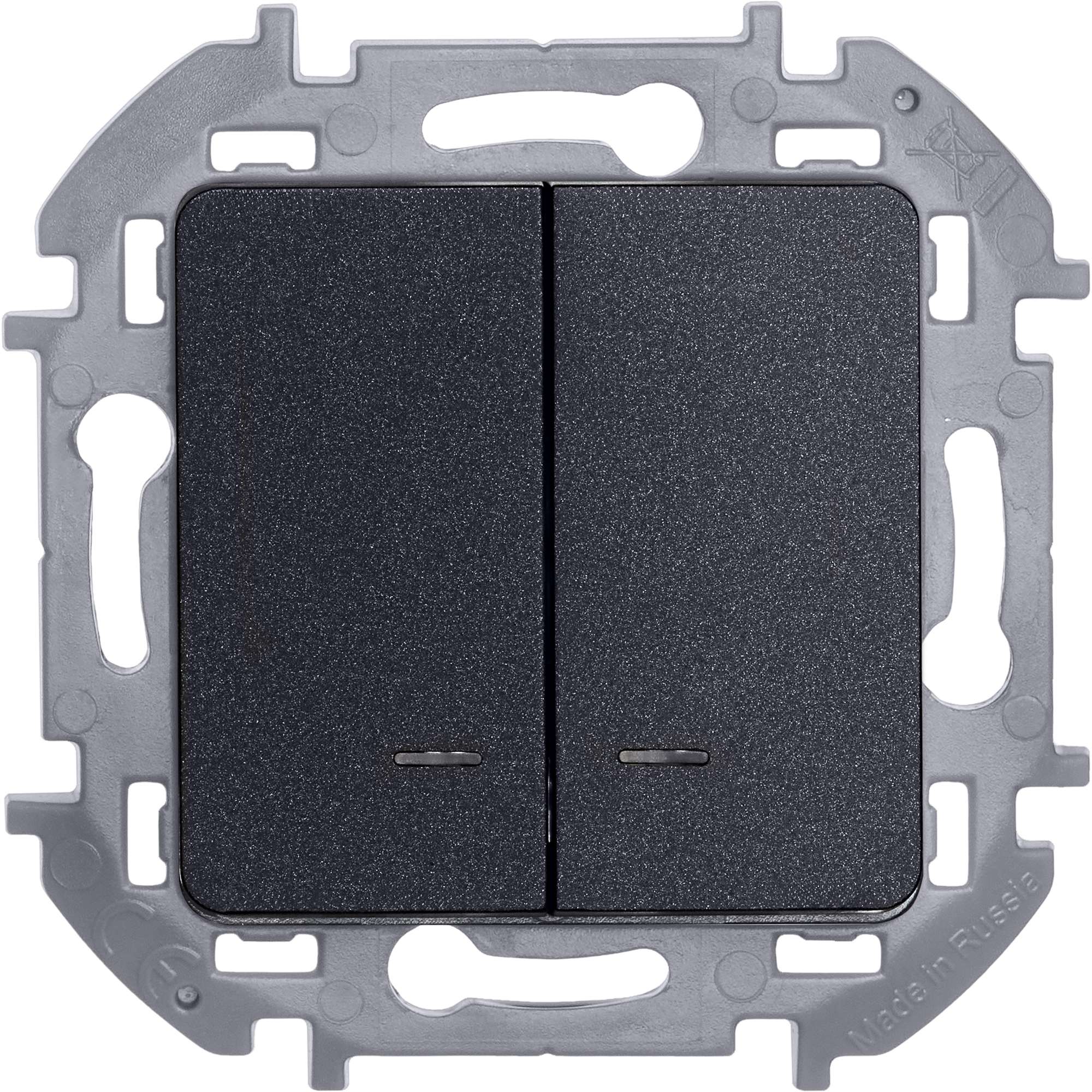 Выключатель двухклавишный с подсветкой/индикацией Legrand Inspiria для скрытого монтажа, цвет Антрацит, номинальный ток 10 А, напряжение 250В. Предназначен для установки в электрических сетях жилых и общественных зданий и используется для управления приборами освещения, вентиляции и т.д. Используется для независимой коммутации двух нагрузок с одного места. Оснащен двумя светодиодными лампами для подсветки или индикации. Особенности изделия: - Компактный механизм с глубиной всего 20 мм. комфортно размещается в различных монтажных коробках. - Материал клавиш - глянцевый пластик АБС, стоек к выгоранию и загрязнениям. - Все токоведущие части выключателя имеют защиту от случайного прикосновения. - Безвинтовые зажимы для присоединения проводов обеспечивают быстрое подключение и отключение, гарантируют надежное и долговечное соеднинение и не требуют обслуживания. - Удобные широкие толкатели облегчают работу по демонтажу провода. - Улучшенная эргономика снижает вероятность искрения при коммутации светодиодов. - Ход клавиши короткий, не громкий. - Две универсальные LED-лампы белого цвета с низким энергопотреблением 0.125мА и возможностью замены - Благодаря свободной схеме подключения, лампа подсветки либо облегчает ориентирование в темноте, либо информирует о включении нагрузки. - Клавиши оборудованы линзами для заметного светового сигнала подсветки или индикации Особенности серии Inspiria: Суппорт и корпус механизма изготовлены из высококачественного поликарбоната, обладают высокой прочностью, не проводят электрический ток, не поддерживают горение. Специальный профиль внешнего контура суппорта обеспечивает простоту выравнивания и безошибочность многопостового монтажа. Скрытые острые крепёжные лапки с широким углом раскрытия обеспечивают травмобезопастный монтаж и надёжную фиксацию в монтажной коробке. Удобная и информативная маркировка сокращает время на подготовку проводов.