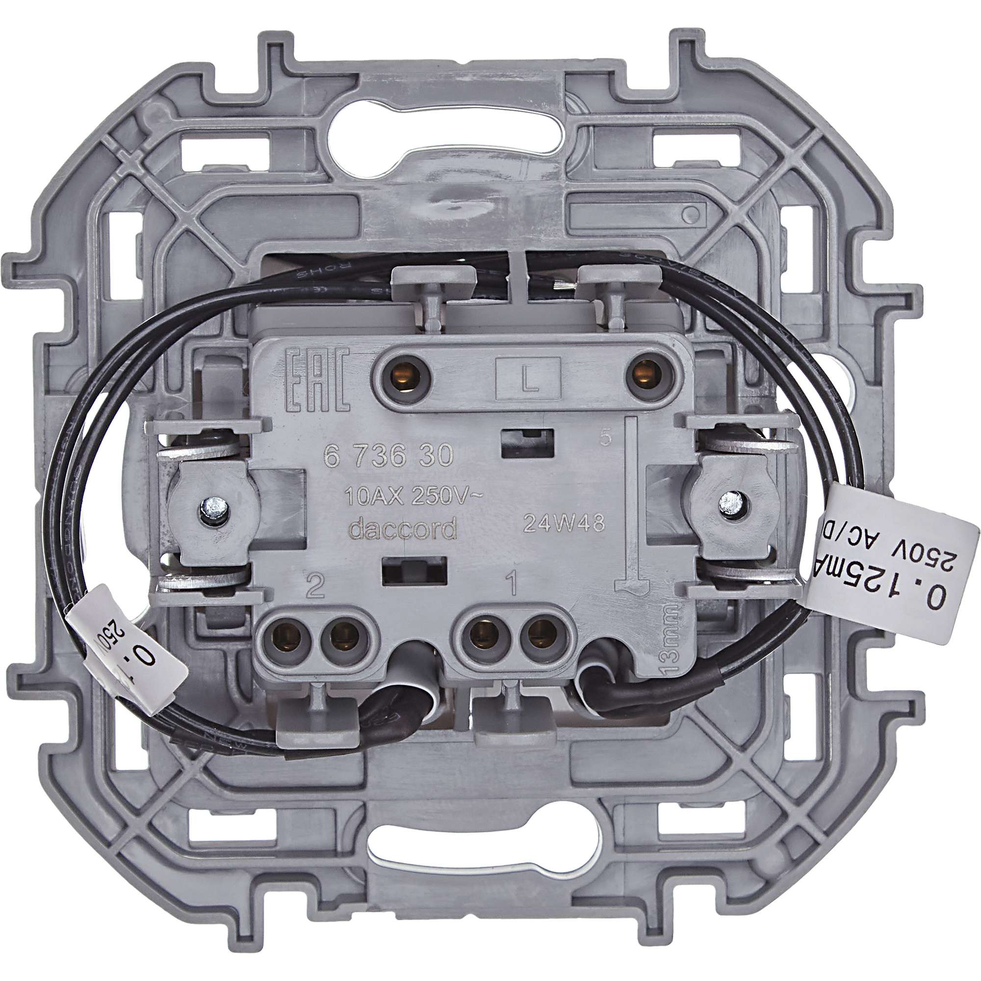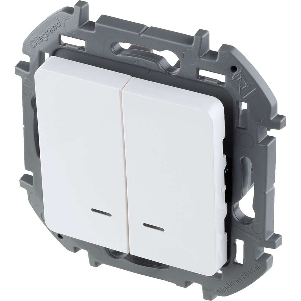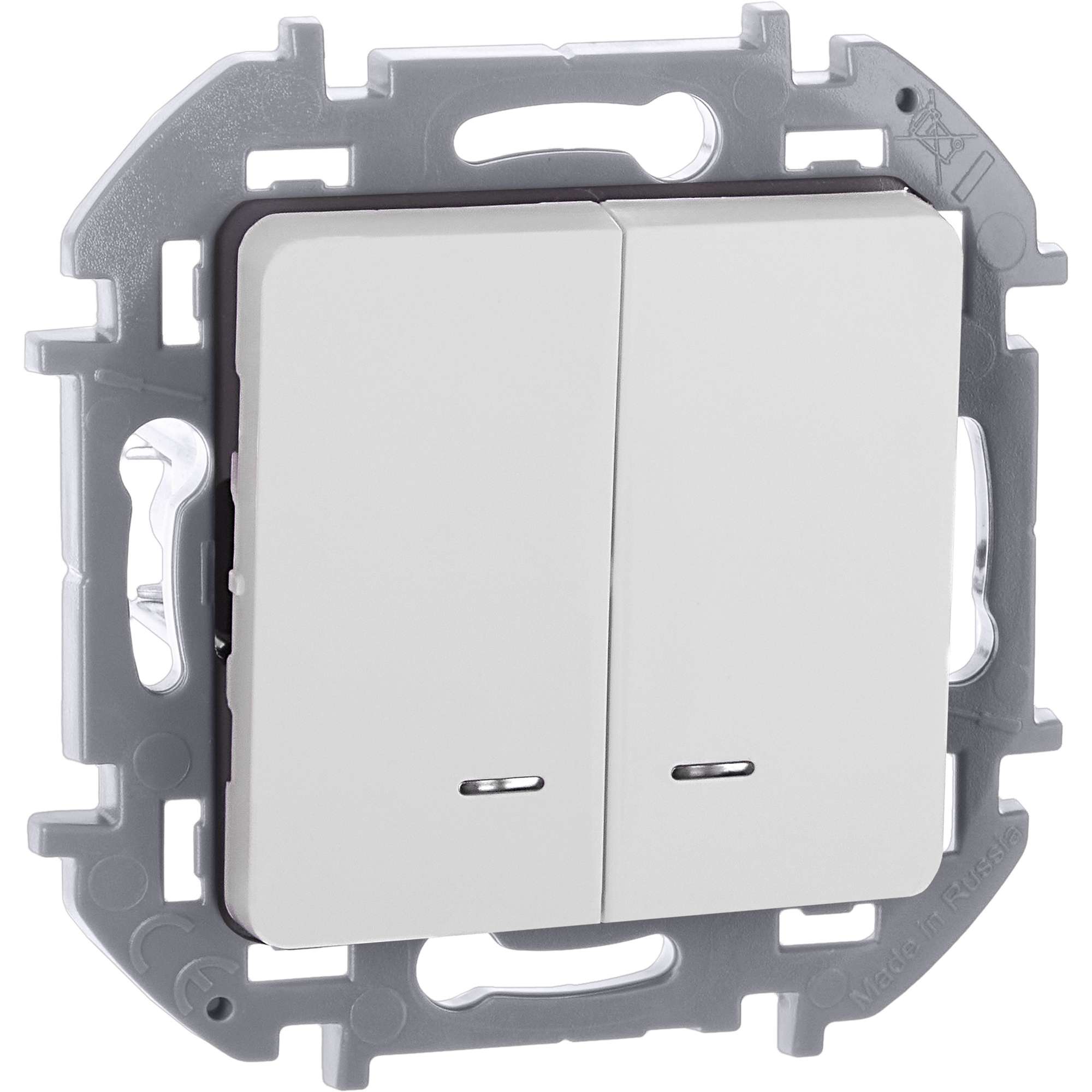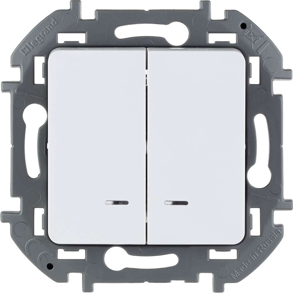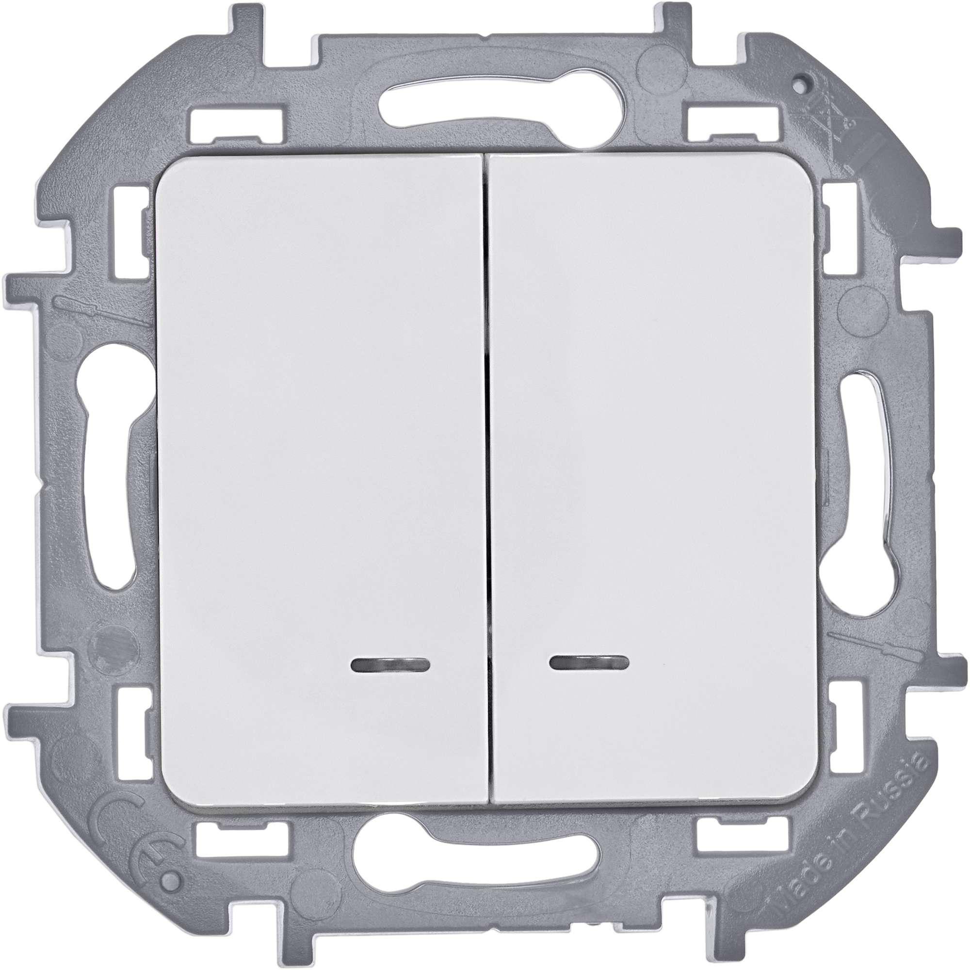 Выключатель двухклавишный с подсветкой/индикацией Legrand Inspiria для скрытого монтажа, цвет Белый, номинальный ток 10 А, напряжение 250В. Предназначен для установки в электрических сетях жилых и общественных зданий и используется для управления приборами освещения, вентиляции и т.д. Используется для независимой коммутации двух нагрузок с одного места. Оснащен двумя светодиодными лампами для подсветки или индикации. Особенности изделия: - Компактный механизм с глубиной всего 20 мм. комфортно размещается в различных монтажных коробках. - Материал клавиш - глянцевый пластик АБС, стоек к выгоранию и загрязнениям. - Все токоведущие части выключателя имеют защиту от случайного прикосновения. - Безвинтовые зажимы для присоединения проводов обеспечивают быстрое подключение и отключение, гарантируют надежное и долговечное соеднинение и не требуют обслуживания. - Удобные широкие толкатели облегчают работу по демонтажу провода. - Улучшенная эргономика снижает вероятность искрения при коммутации светодиодов. - Ход клавиши короткий, не громкий. - Две универсальные LED-лампы белого цвета с низким энергопотреблением 0.125мА и возможностью замены - Благодаря свободной схеме подключения, лампа подсветки либо облегчает ориентирование в темноте, либо информирует о включении нагрузки. - Клавиши оборудованы линзами для заметного светового сигнала подсветки или индикации Особенности серии Inspiria: Суппорт и корпус механизма изготовлены из высококачественного поликарбоната, обладают высокой прочностью, не проводят электрический ток, не поддерживают горение. Специальный профиль внешнего контура суппорта обеспечивает простоту выравнивания и безошибочность многопостового монтажа. Скрытые острые крепёжные лапки с широким углом раскрытия обеспечивают травмобезопастный монтаж и надёжную фиксацию в монтажной коробке. Удобная и информативная маркировка сокращает время на подготовку проводов.