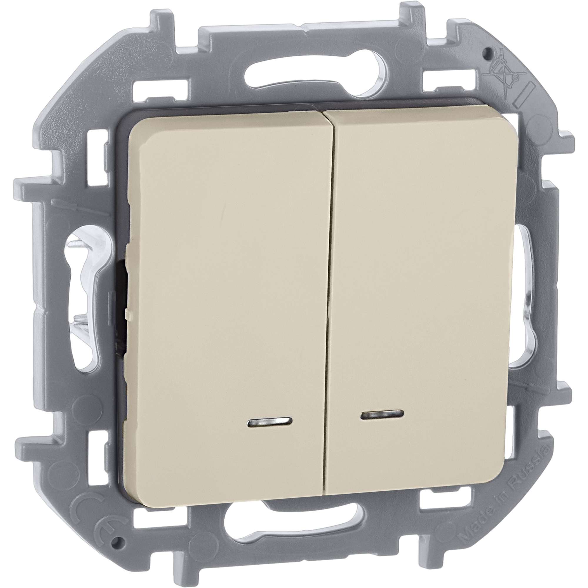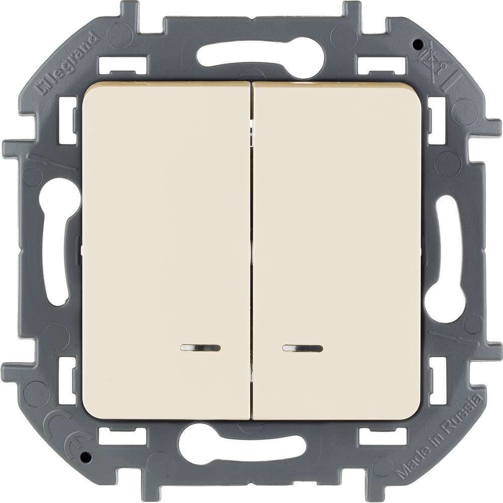 Выключатель двухклавишный с подсветкой/индикацией Legrand Inspiria для скрытого монтажа, цвет Слоновая кость, номинальный ток 10 А, напряжение 250В. Предназначен для установки в электрических сетях жилых и общественных зданий и используется для управления приборами освещения, вентиляции и т.д. Используется для независимой коммутации двух нагрузок с одного места. Оснащен двумя светодиодными лампами для подсветки или индикации. Особенности изделия: - Компактный механизм с глубиной всего 20 мм. комфортно размещается в различных монтажных коробках. - Материал клавиш - глянцевый пластик АБС, стоек к выгоранию и загрязнениям. - Все токоведущие части выключателя имеют защиту от случайного прикосновения. - Безвинтовые зажимы для присоединения проводов обеспечивают быстрое подключение и отключение, гарантируют надежное и долговечное соеднинение и не требуют обслуживания. - Удобные широкие толкатели облегчают работу по демонтажу провода. - Улучшенная эргономика снижает вероятность искрения при коммутации светодиодов. - Ход клавиши короткий, не громкий. - Две универсальные LED-лампы белого цвета с низким энергопотреблением 0.125мА и возможностью замены - Благодаря свободной схеме подключения, лампа подсветки либо облегчает ориентирование в темноте, либо информирует о включении нагрузки. - Клавиши оборудованы линзами для заметного светового сигнала подсветки или индикации Особенности серии Inspiria: Суппорт и корпус механизма изготовлены из высококачественного поликарбоната, обладают высокой прочностью, не проводят электрический ток, не поддерживают горение. Специальный профиль внешнего контура суппорта обеспечивает простоту выравнивания и безошибочность многопостового монтажа. Скрытые острые крепёжные лапки с широким углом раскрытия обеспечивают травмобезопастный монтаж и надёжную фиксацию в монтажной коробке. Удобная и информативная маркировка сокращает время на подготовку проводов.