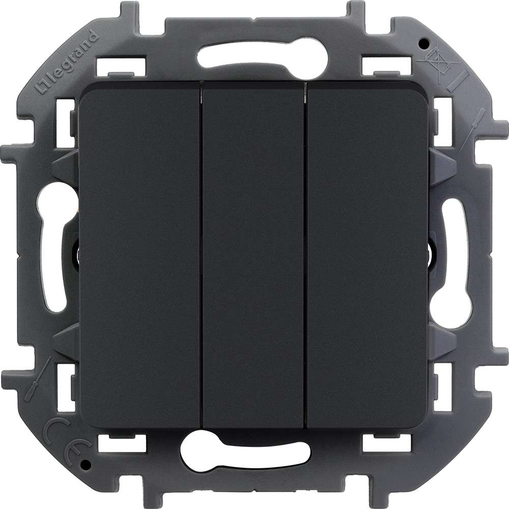 Переключатель кнопочный одноклавишный Legrand Inspiria для скрытого монтажа, номинальный ток 6 А, напряжение 250В, цвет Антрацит. Предназначен для установки в электрических сетях жилых и общественных зданий и используется для импульсного управления электрическими звонками, реле, контакторами, светорегуляторами и т.д. Особенности изделия: - Компактный механизм с глубиной всего 20 мм. комфортно размещается в различных монтажных коробках. - Материал клавиши - глянцевый пластик АБС, стоек к выгоранию и загрязнениям. - Все токоведущие части выключателя имеют защиту от случайного прикосновения. - Безвинтовые зажимы для присоединения проводов обеспечивают быстрое подключение и отключение, гарантируют надежное и долговечное соеднинение и не требуют обслуживания. - Удобные широкие толкатели облегчают работу по демонтажу провода. - Улучшенная эргономика снижает вероятность искрения при коммутации светодиодов. - Ход клавиши короткий, не громкий.