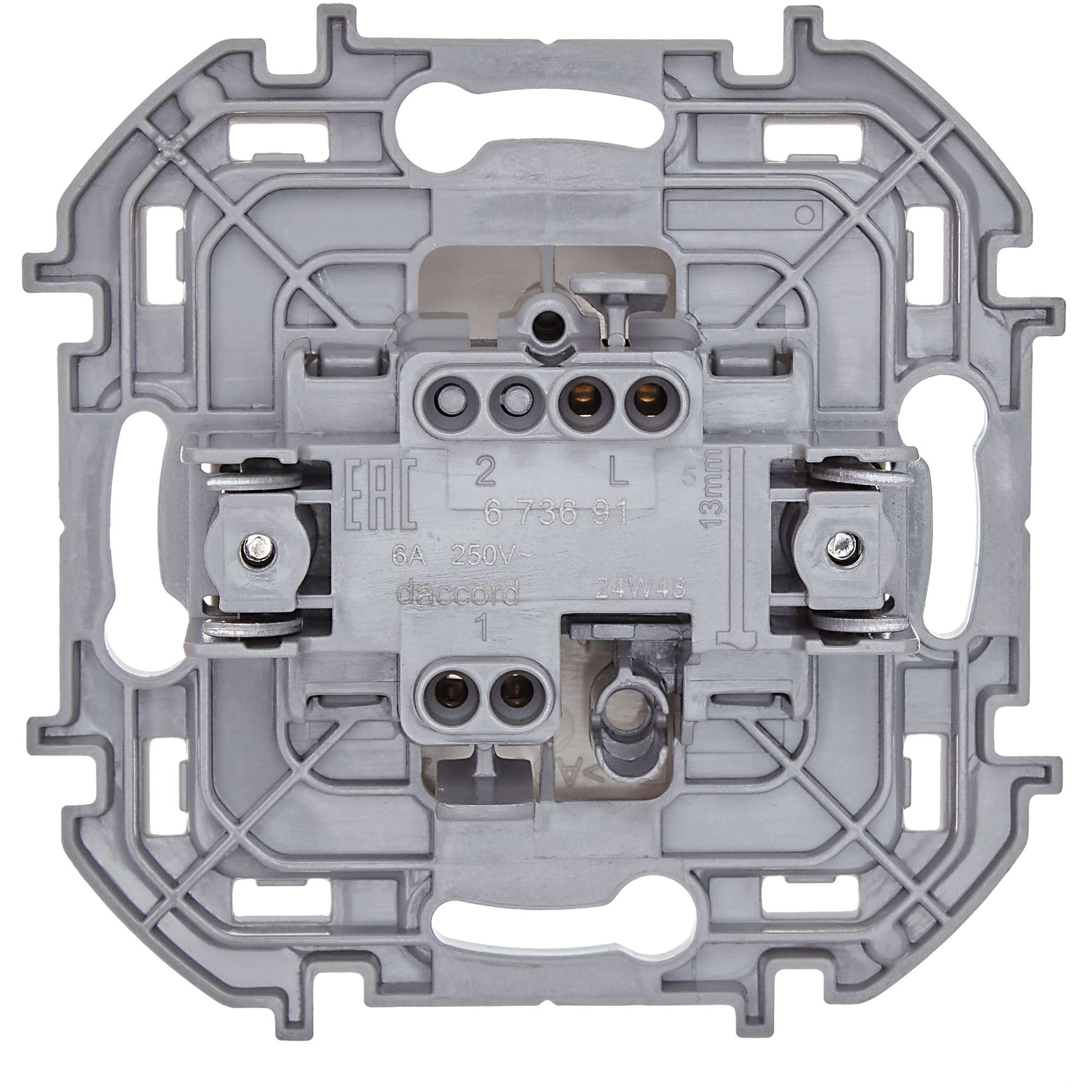 Переключатель кнопочный одноклавишный Legrand Inspiria для скрытого монтажа, номинальный ток 6 А, напряжение 250В, цвет Слоновая кость. Предназначен для установки в электрических сетях жилых и общественных зданий и используется для импульсного управления электрическими звонками, реле, контакторами, светорегуляторами и т.д. Особенности изделия: - Компактный механизм с глубиной всего 20 мм. комфортно размещается в различных монтажных коробках. - Материал клавиши - глянцевый пластик АБС, стоек к выгоранию и загрязнениям. - Все токоведущие части выключателя имеют защиту от случайного прикосновения. - Безвинтовые зажимы для присоединения проводов обеспечивают быстрое подключение и отключение, гарантируют надежное и долговечное соеднинение и не требуют обслуживания. - Удобные широкие толкатели облегчают работу по демонтажу провода. - Улучшенная эргономика снижает вероятность искрения при коммутации светодиодов. - Ход клавиши короткий, не громкий.