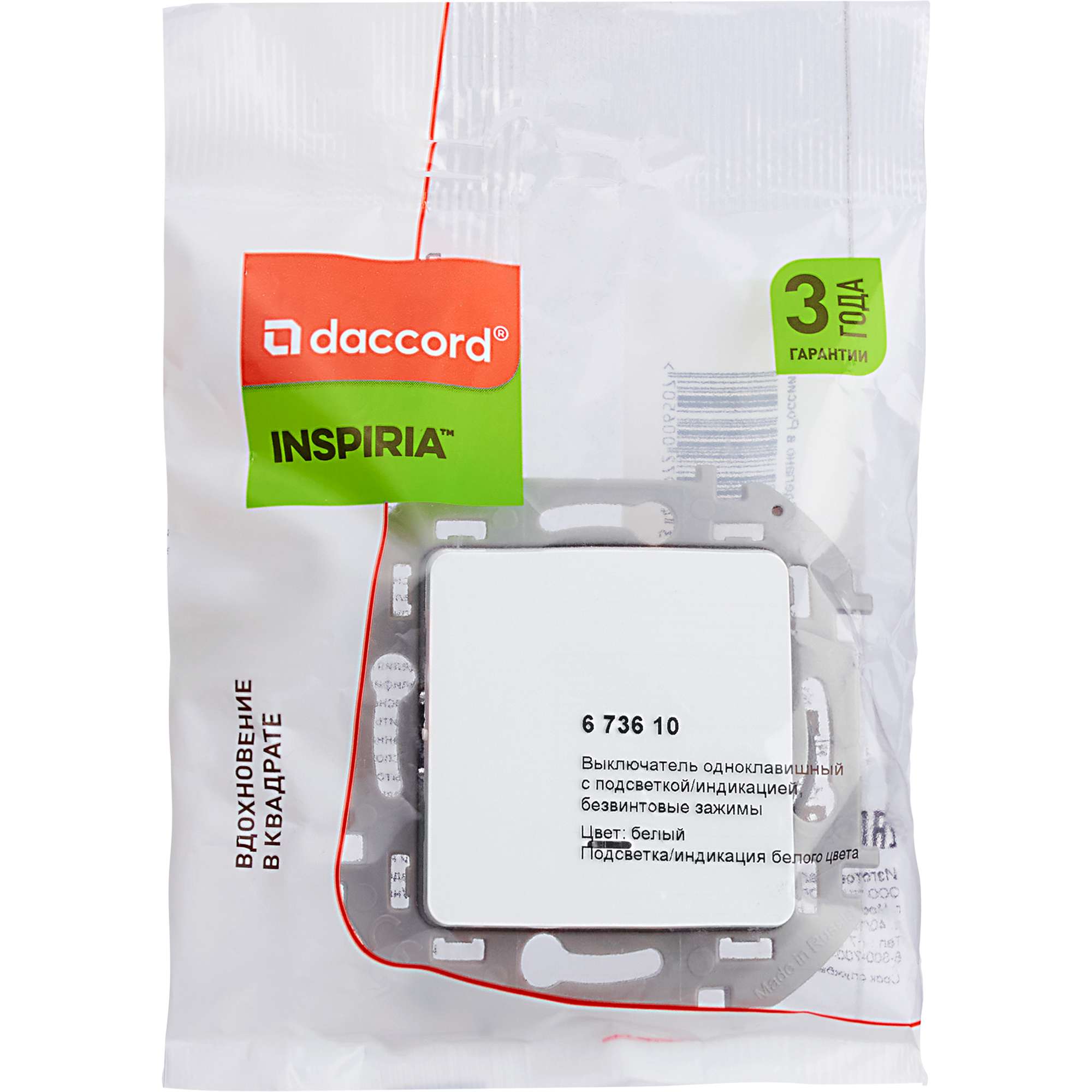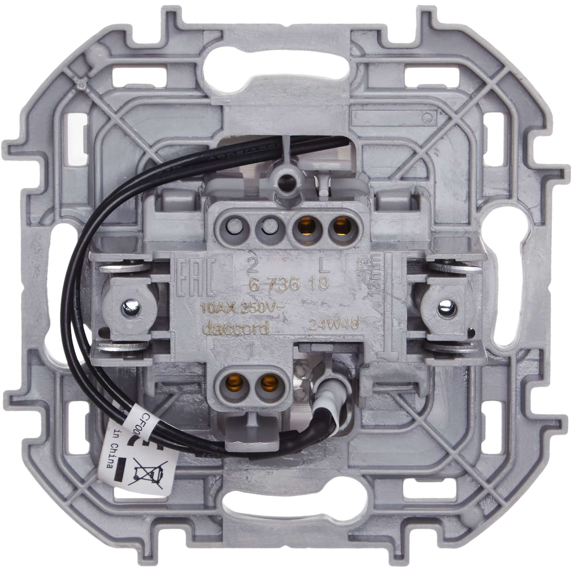 Выключатель одноклавишный с подсветкой/индикацией Legrand Inspiria для скрытого монтажа, цвет Белый, номинальный ток 10 А, напряжение 250 В. Предназначен для установки в электрических сетях жилых и общественных зданий и используется для управления приборами освещения, вентиляции и т.д. Оснащен светодиодной лампой для подсветки или индикации. Особенности изделия: - Компактный механизм с глубиной всего 20 мм. комфортно размещается в различных монтажных коробках. - Материал клавиш - глянцевый пластик АБС, стоек к выгоранию и загрязнениям. - Все токоведущие части выключателя имеют защиту от случайного прикосновения. - Безвинтовые зажимы для присоединения проводов обеспечивают быстрое подключение и отключение, гарантируют надежное и долговечное соеднинение и не требуют обслуживания. - Удобные широкие толкатели облегчают работу по демонтажу провода. - Улучшенная эргономика снижает вероятность искрения при коммутации светодиодов. - Ход клавиши короткий, не громкий. - Универсальная LED-лампа белого цвета с низким энергопотреблением 0.125мА и возможностью замены - Благодаря свободной схеме подключения, лампа подсветки либо облегчает ориентирование в темноте, либо информирует о включении нагрузки. - Клавиша оборудована линзой для заметного светового сигнала подсветки или индикации.